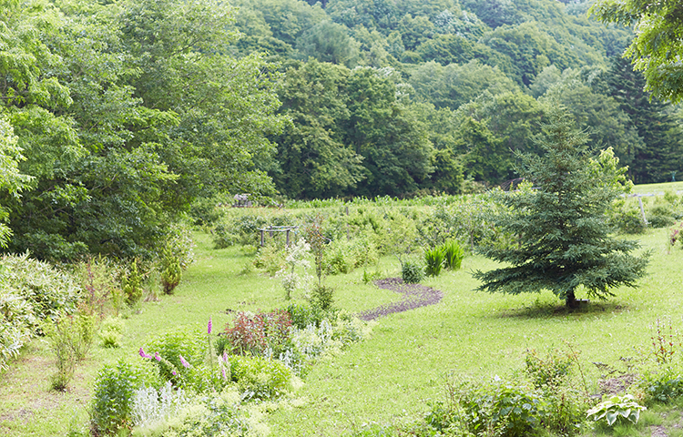 笹だらけの土地の開墾から始まった壮瞥町生活。「計画性はあまりなかったんですよ。思いついたことを、とにかくやりました」と登さんは当時を振り返る。花木を植えつけても最初の2、3年は安定しなかった。その手入れをしながら新たな庭を作り、畑を耕し、2年目には大工さんと相談しながらカフェを建てた。さらに、畑は自然が相手。害虫対策や作物の食味の向上は、経験を重ねるしかなかった。やるべきことは絶えずあり、季節は幾つも巡った。