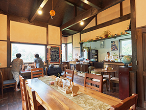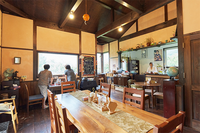 『ほのぼの村』は、小山内ご夫妻が約12年の歳月をかけてコツコツと創り上げたもの。古民家に見えるカフェも移住後に建築したもので、内装の大部分はご夫妻が自らの手で施した。