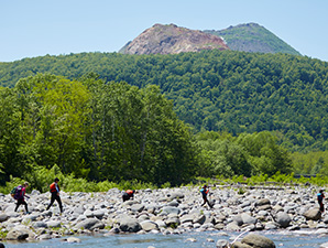 地元壮瞥町をはじめ、近隣市町の小学生が参加する『野生児キャンプ』では、野生動物を探して、触れて、ひたすら人間と動物の関わりについて学ぶ。「カエルやヘビのことを気持ち悪いって言うけれど、こういう動物がいなくなるとどう思う?って聞くんです。子どもたちは何かを感じ、考えます。みんなが仲良く暮らしていく方法はないの?って」。どんな命も、生きものどうしのつながりを生む大切な一員であり、地球上の"仲間"なのだ。「川の魚は水生昆虫を食べ、水生昆虫は葉っぱを食べて生きている。では人間が、川の周囲の木を切ってしまったらどうなる? そんなことも聞いたりします」。