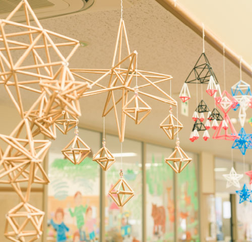 中岡さんの配属先、壮瞥町教育委員会がある地域交流センター山美湖(やまびこ)を訪ねると、北欧フィンランドの伝統装飾、「ヒンメリ」が出迎えてくれた。