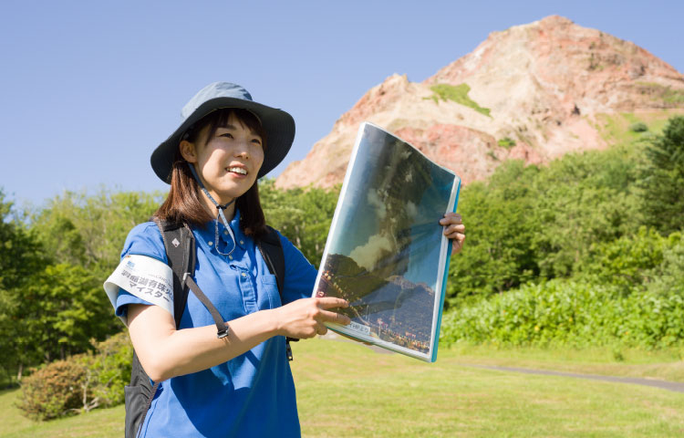 ある日、中岡さんはガイド役として、昭和新山の麓にいた。