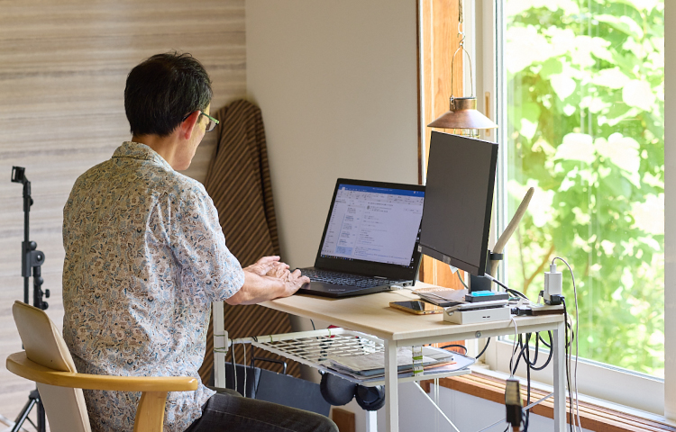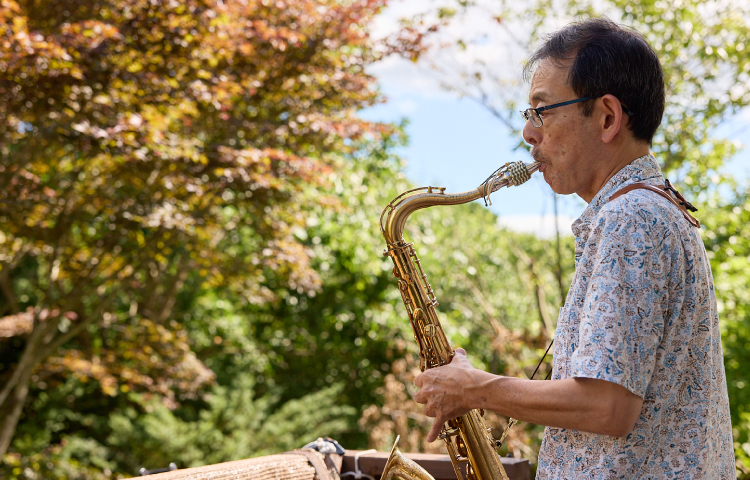 60代半ばの尊英さんは、長年勤務した横浜の会社をセミリタイアし、壮瞥町へ移住。フルリモートで専門的な職務を全うしながら、ある時はサックス、ある時はフルート奏者として仲間とステージに立ち、演奏活動を楽しんでいる。