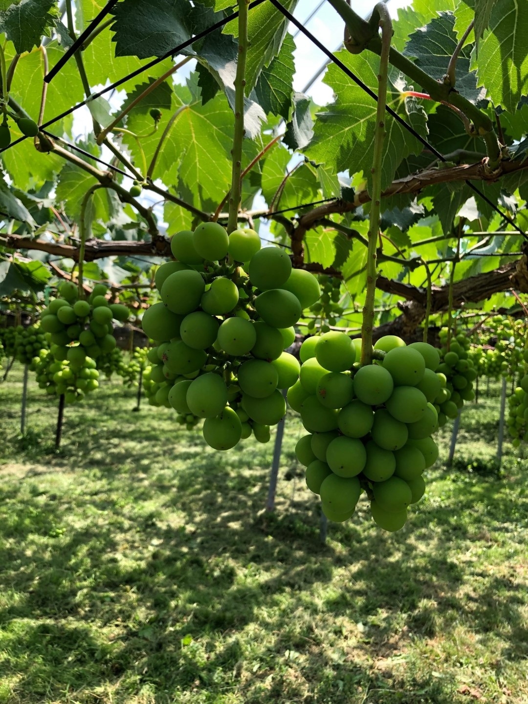 *7月中旬のぶどう摘果作業。2房・3房まで、実を絞る。