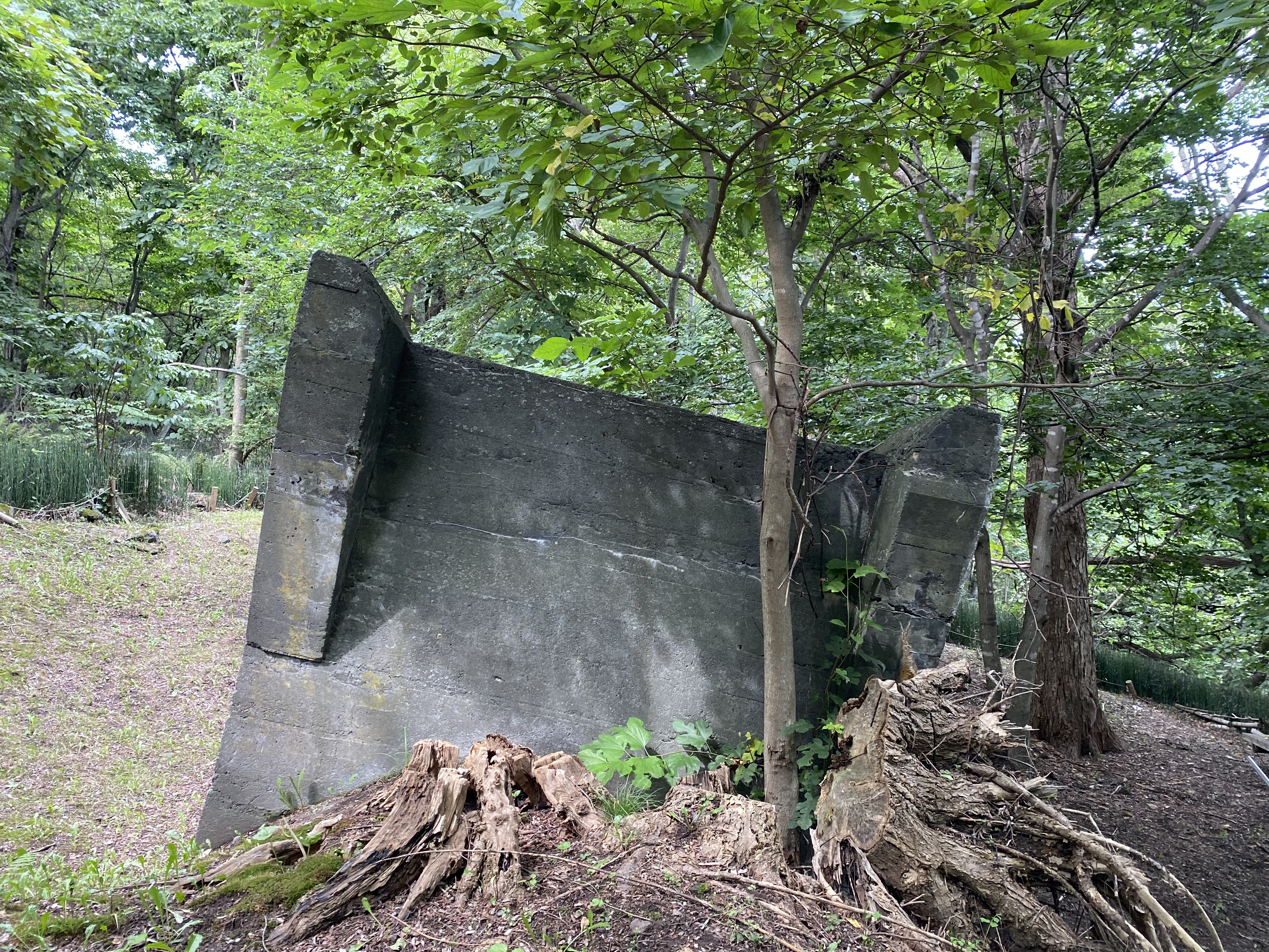 登りきるとパッと開けた場所が出てきて、そこに大きなコンクリートが2つ。