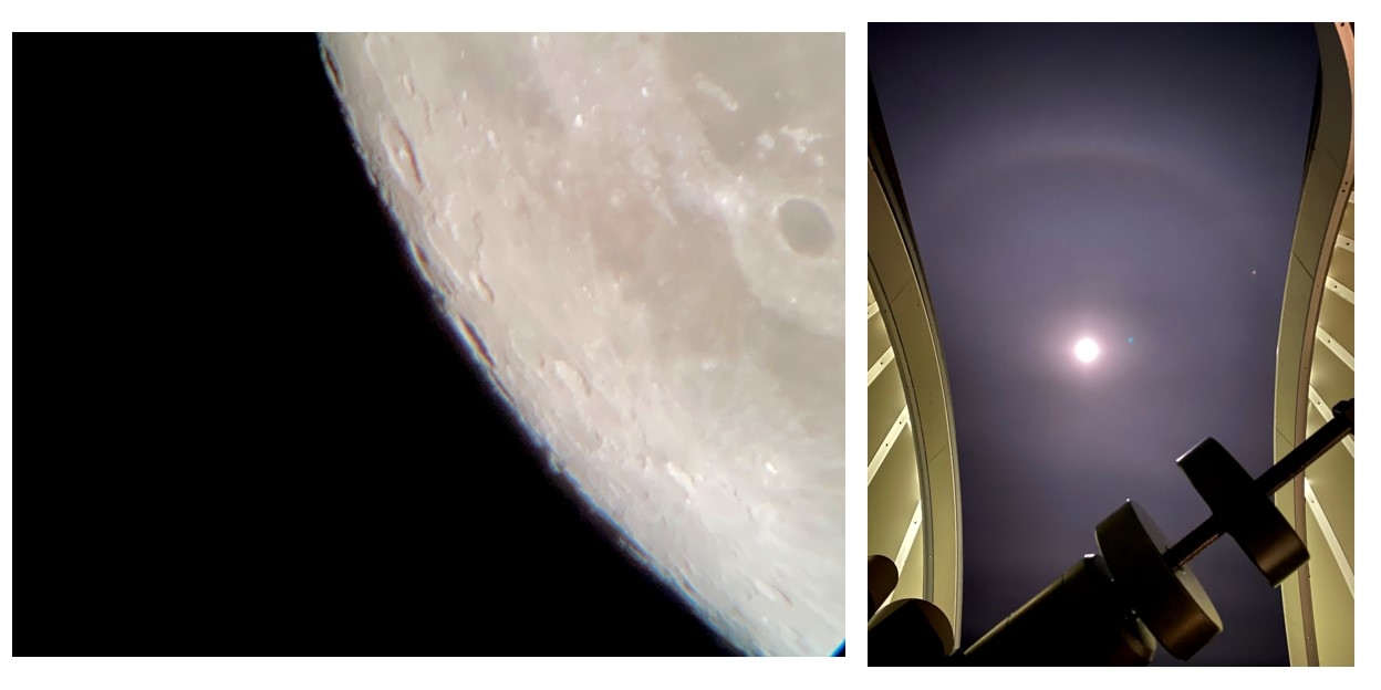 天体望遠鏡を覗くと、クレーターがくっきり。