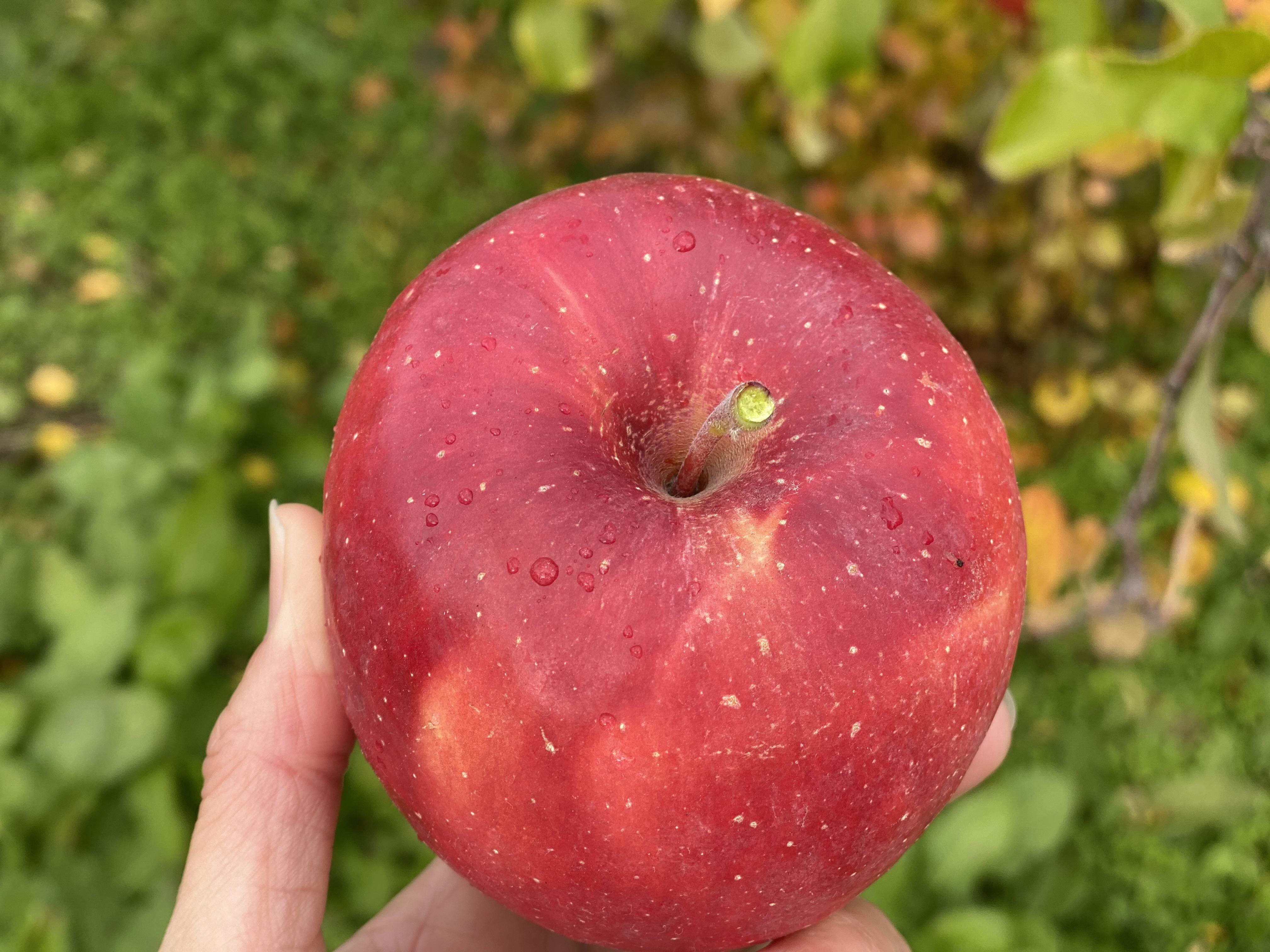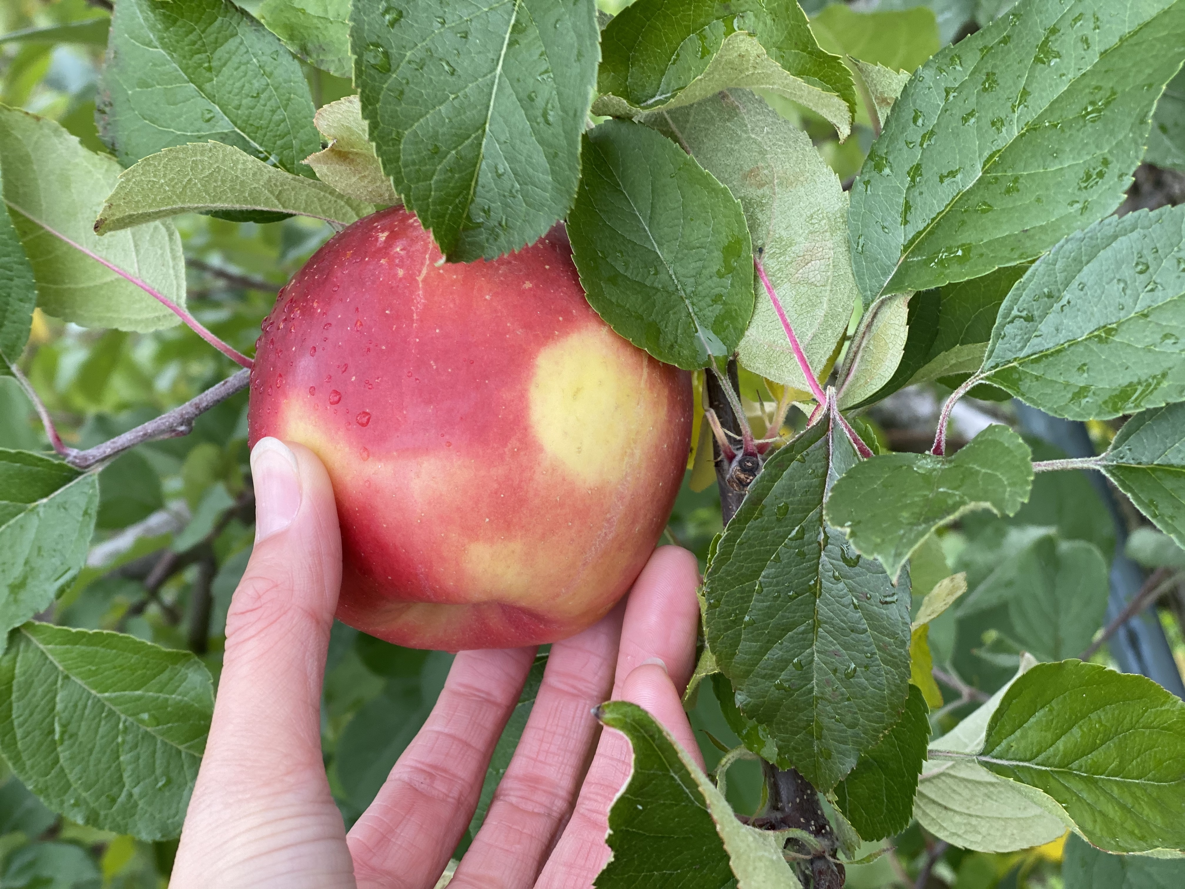 なので、下から上。りんごのおしりを持ち上げるようにするだけで簡単に採れます。
