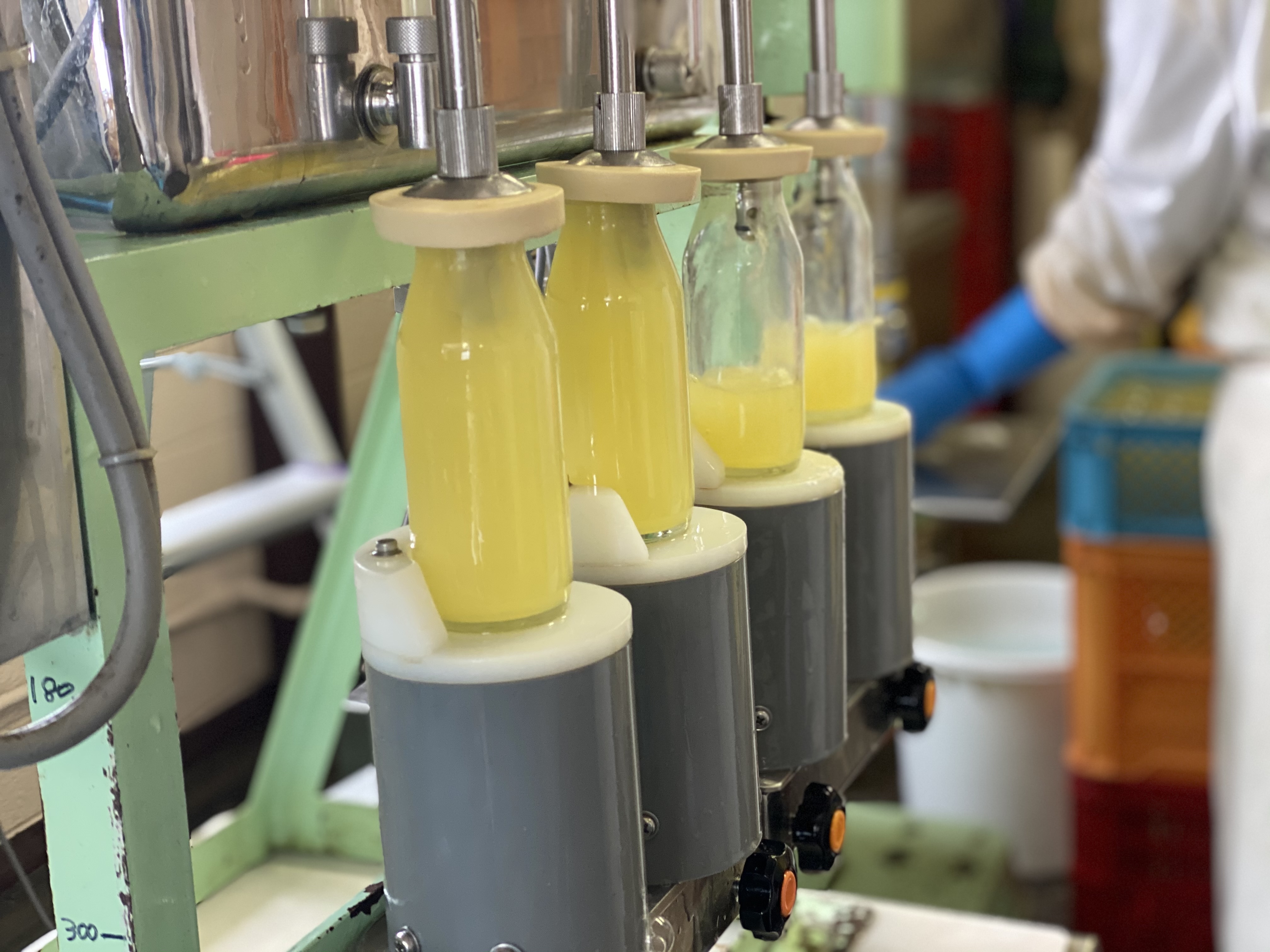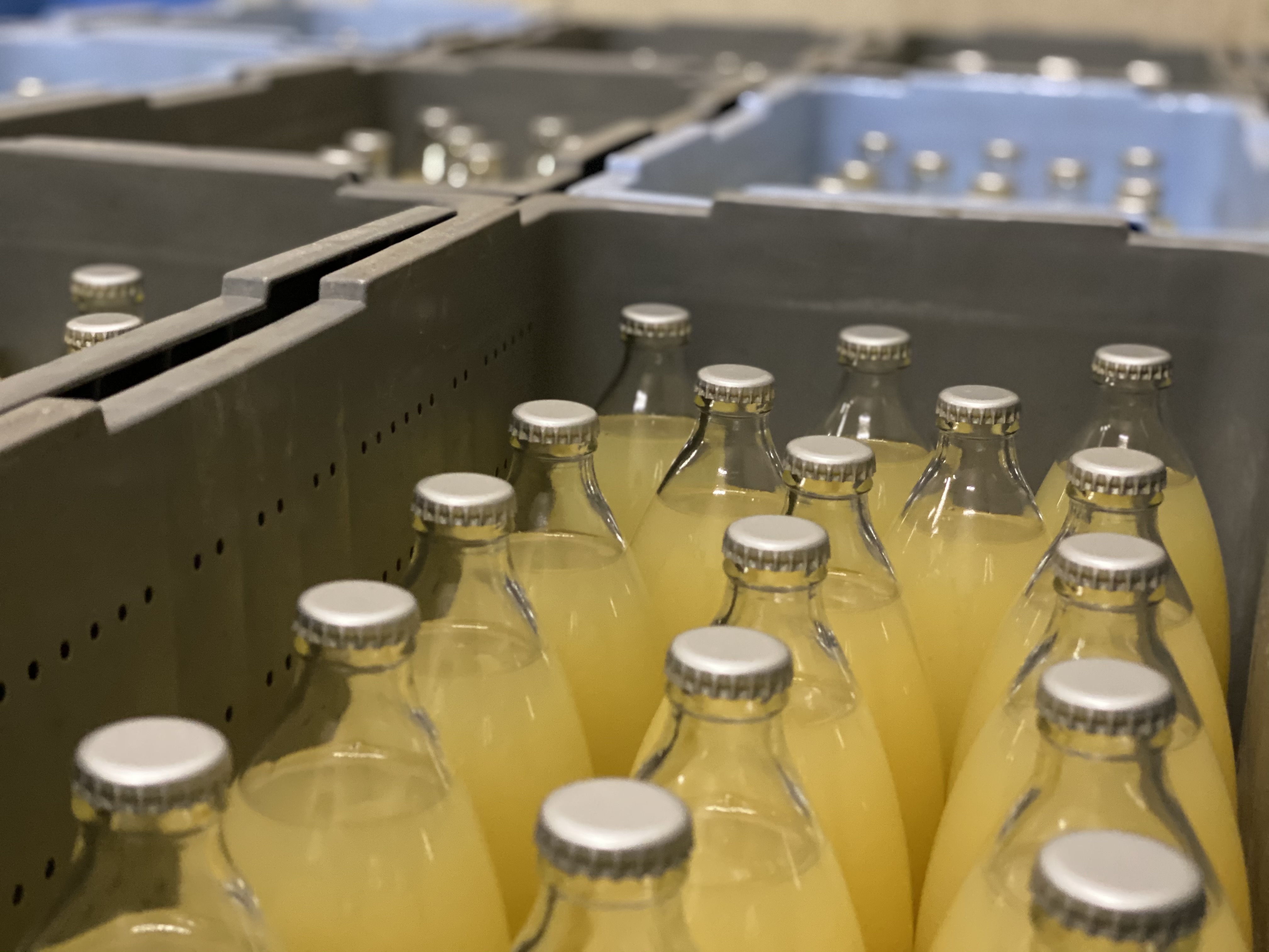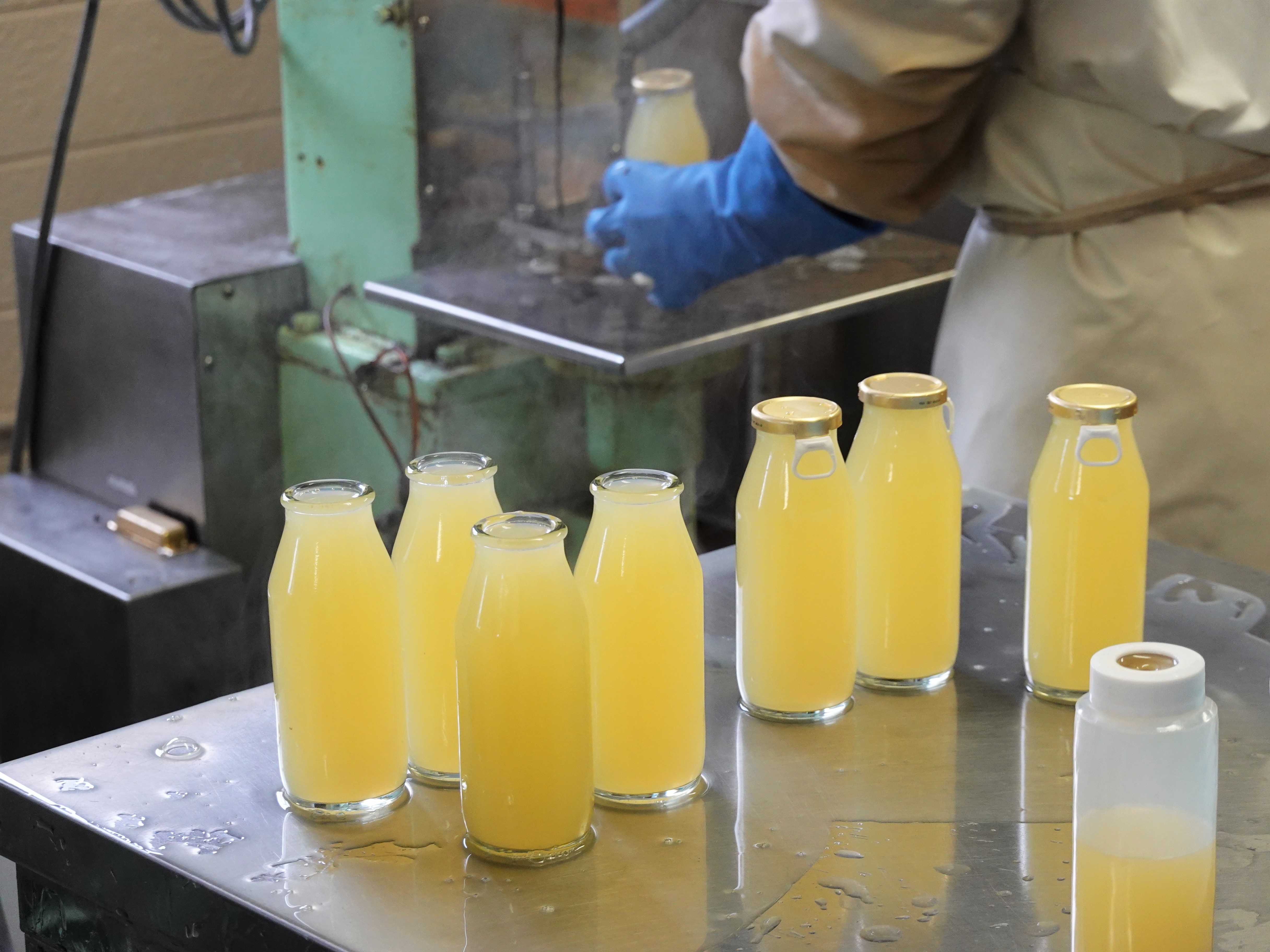 出来上がったジュースはそれぞれの販売店(果樹園や道の駅サムズなど)で