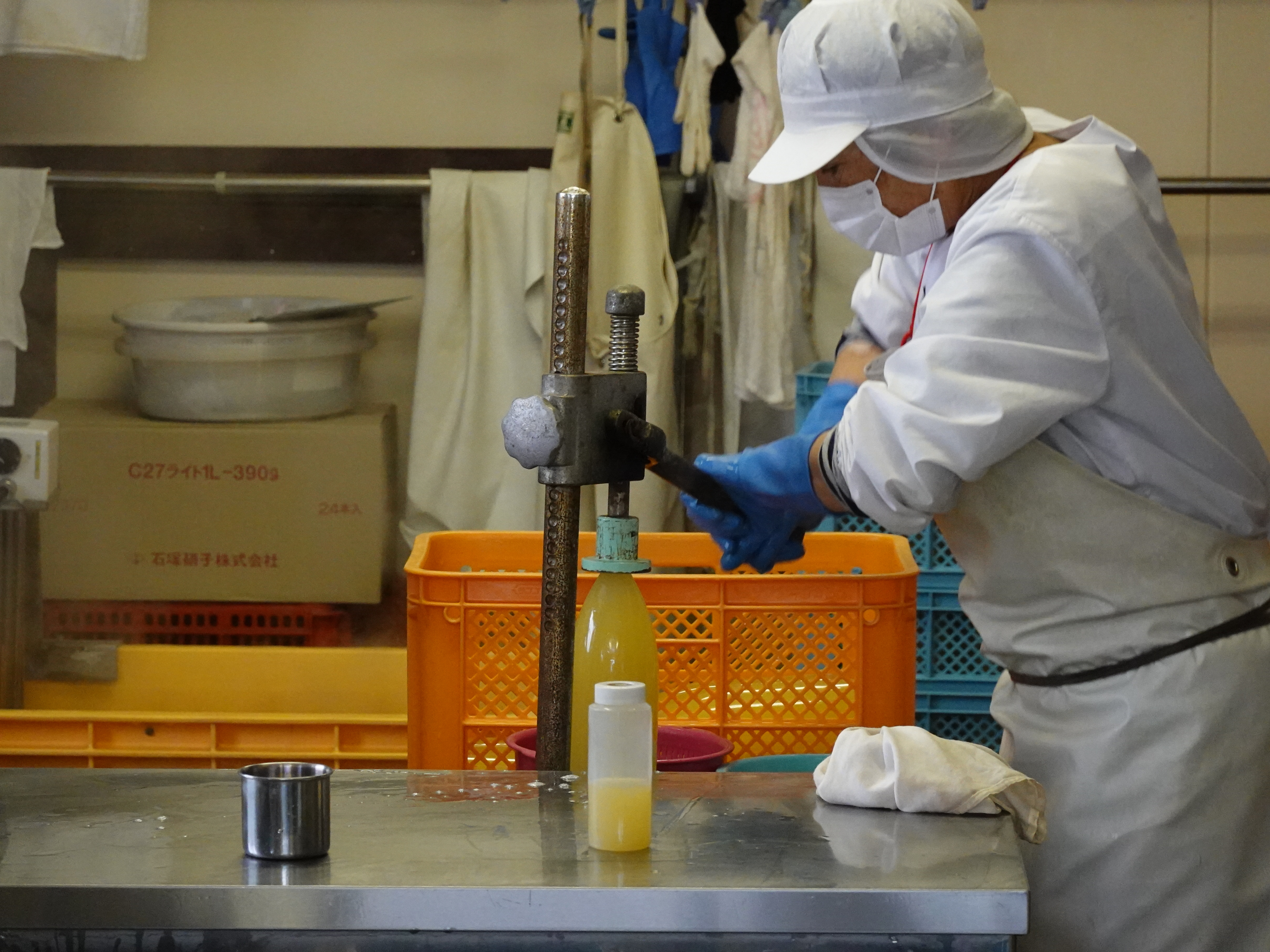 瓶に詰める前に、機械の一部(フィルター)で更にろ過。