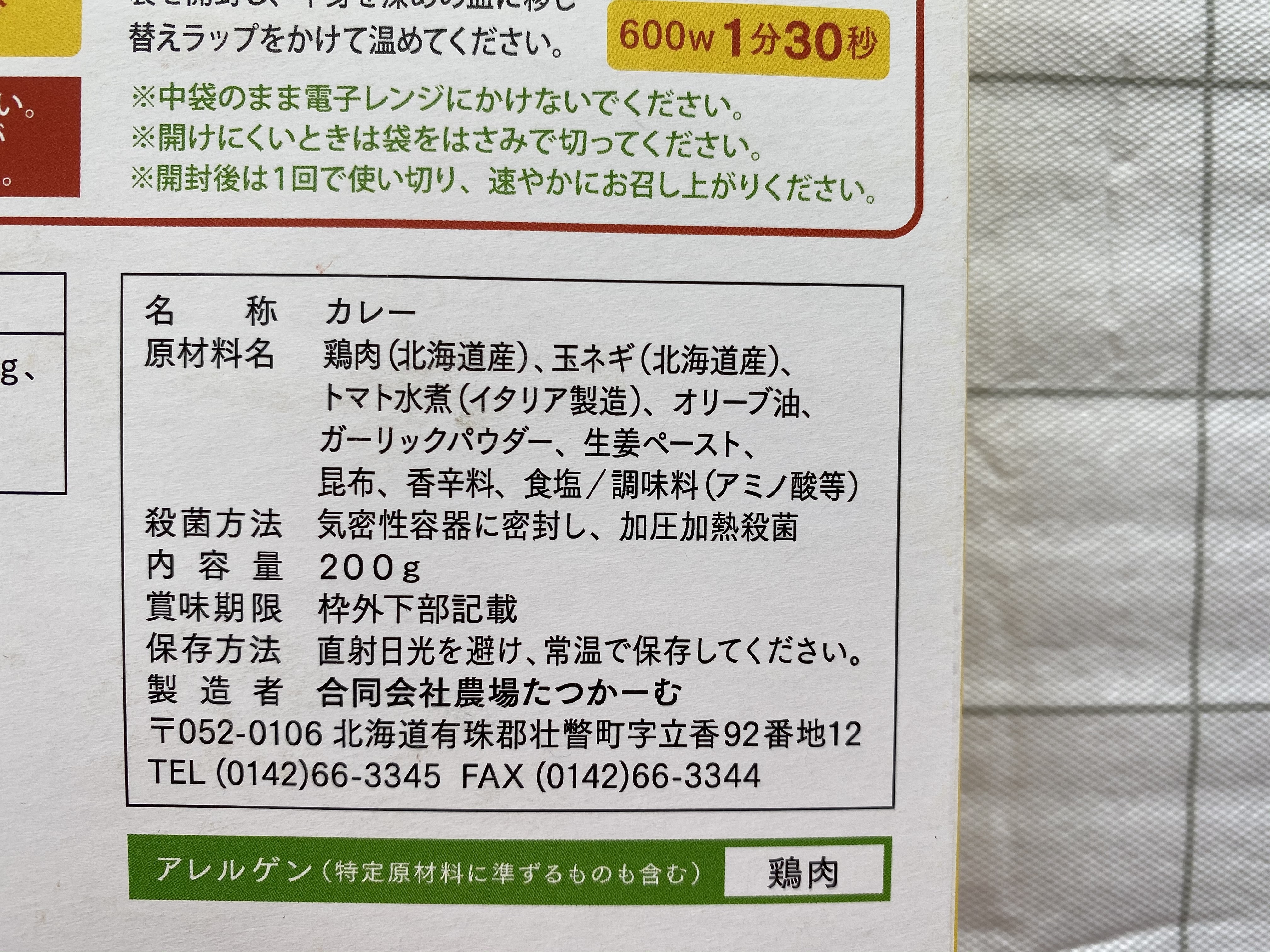 壮瞥町立香にある「農場たつかーむ・たまごCafé」のレトルトカレー。