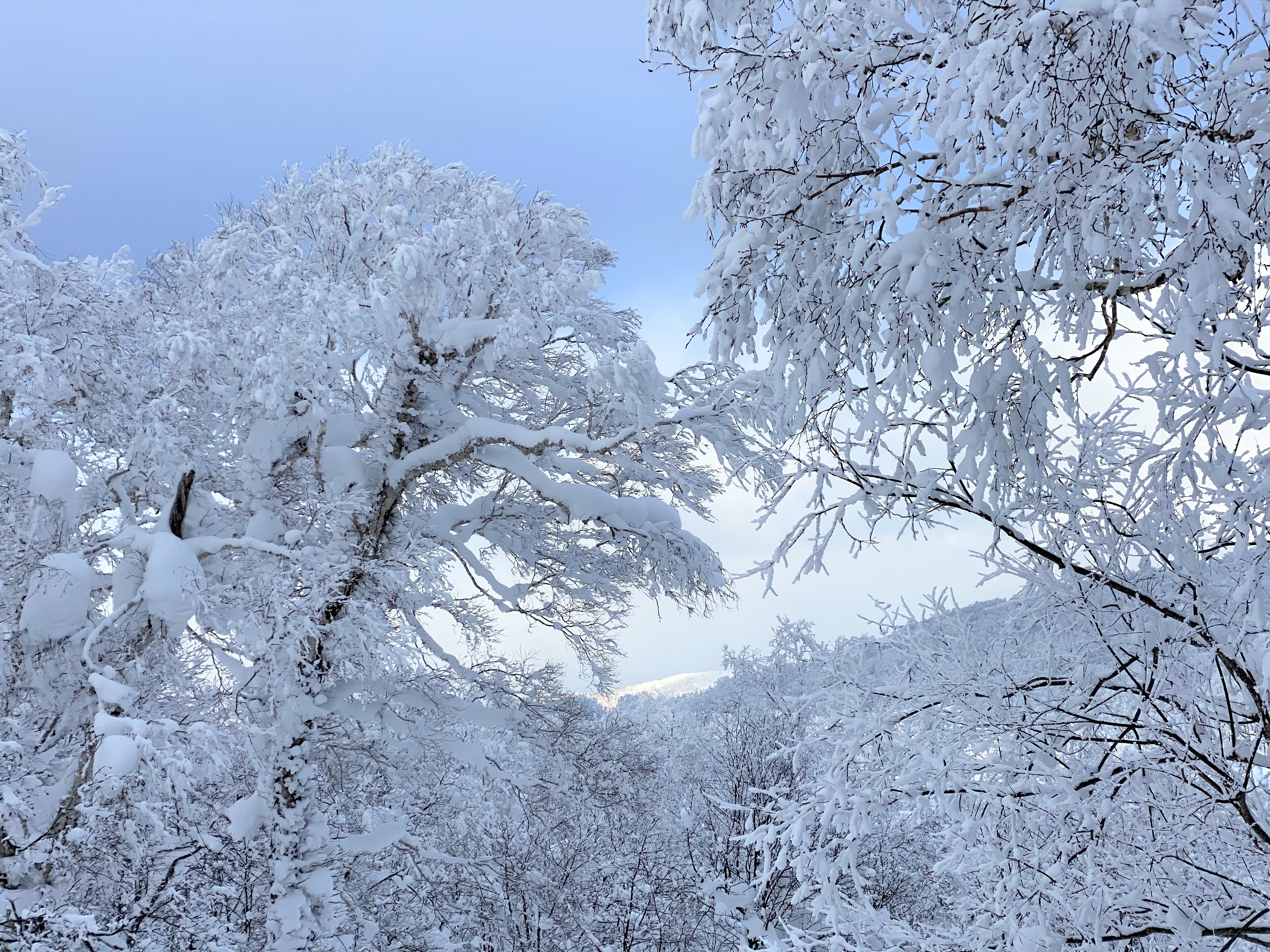 冷たい外気さえも、樹氷の美しさを演出してくれているかのようです。