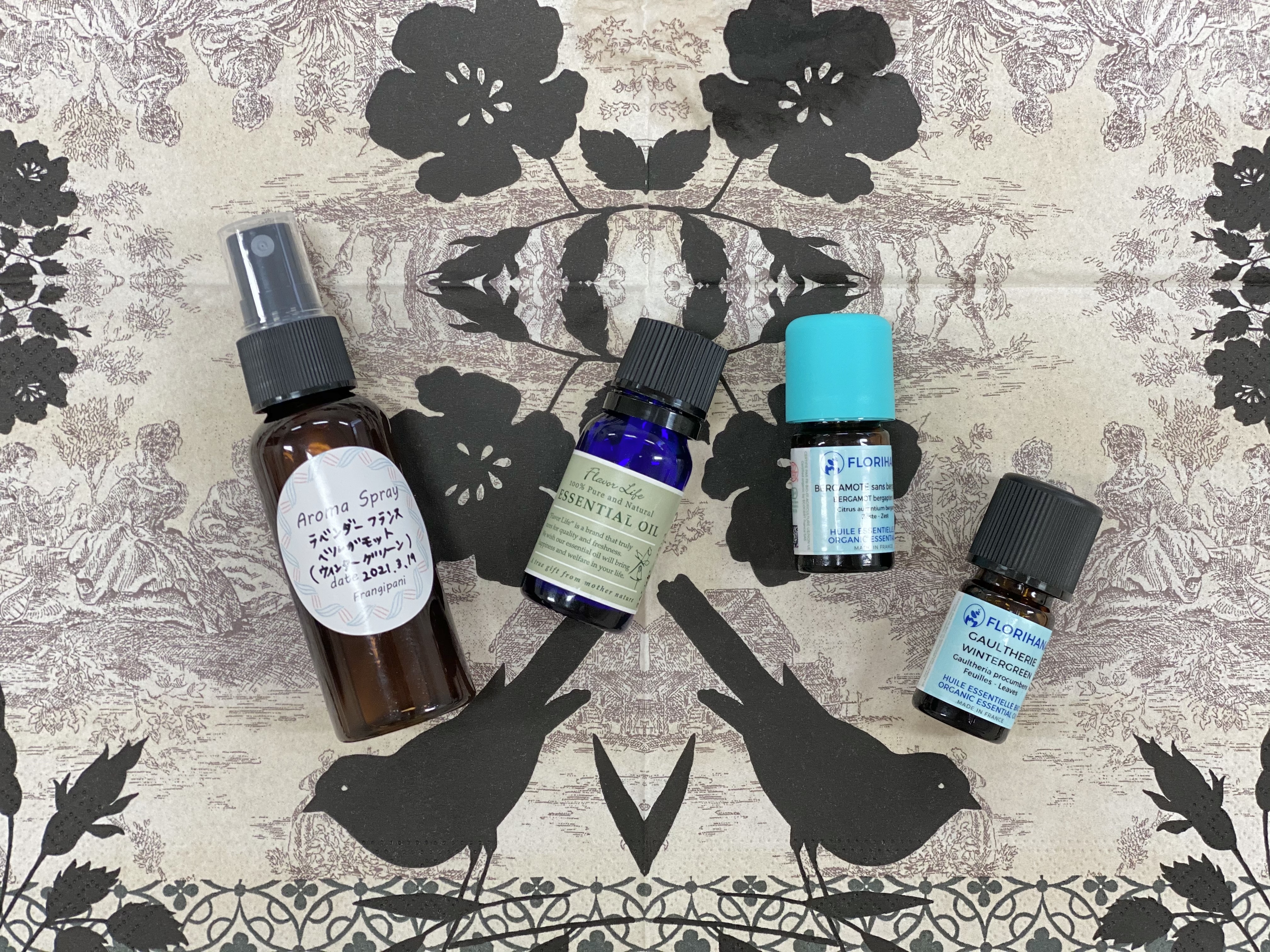 をテーマに、リラックス系の精油を選んでアロマスプレーを制作しました。