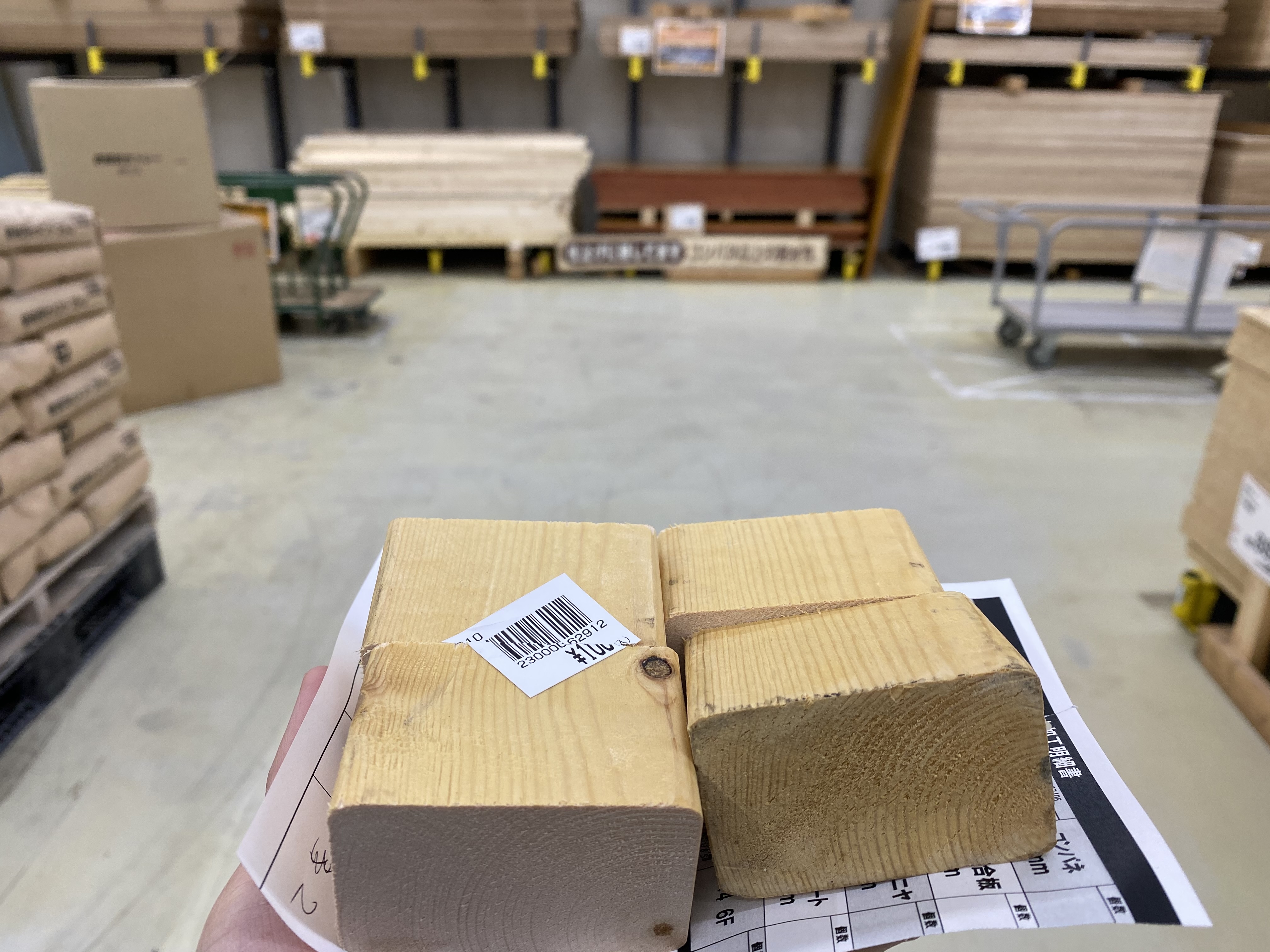 ホームセンターで購入した100円の廃材をカットしてもらい