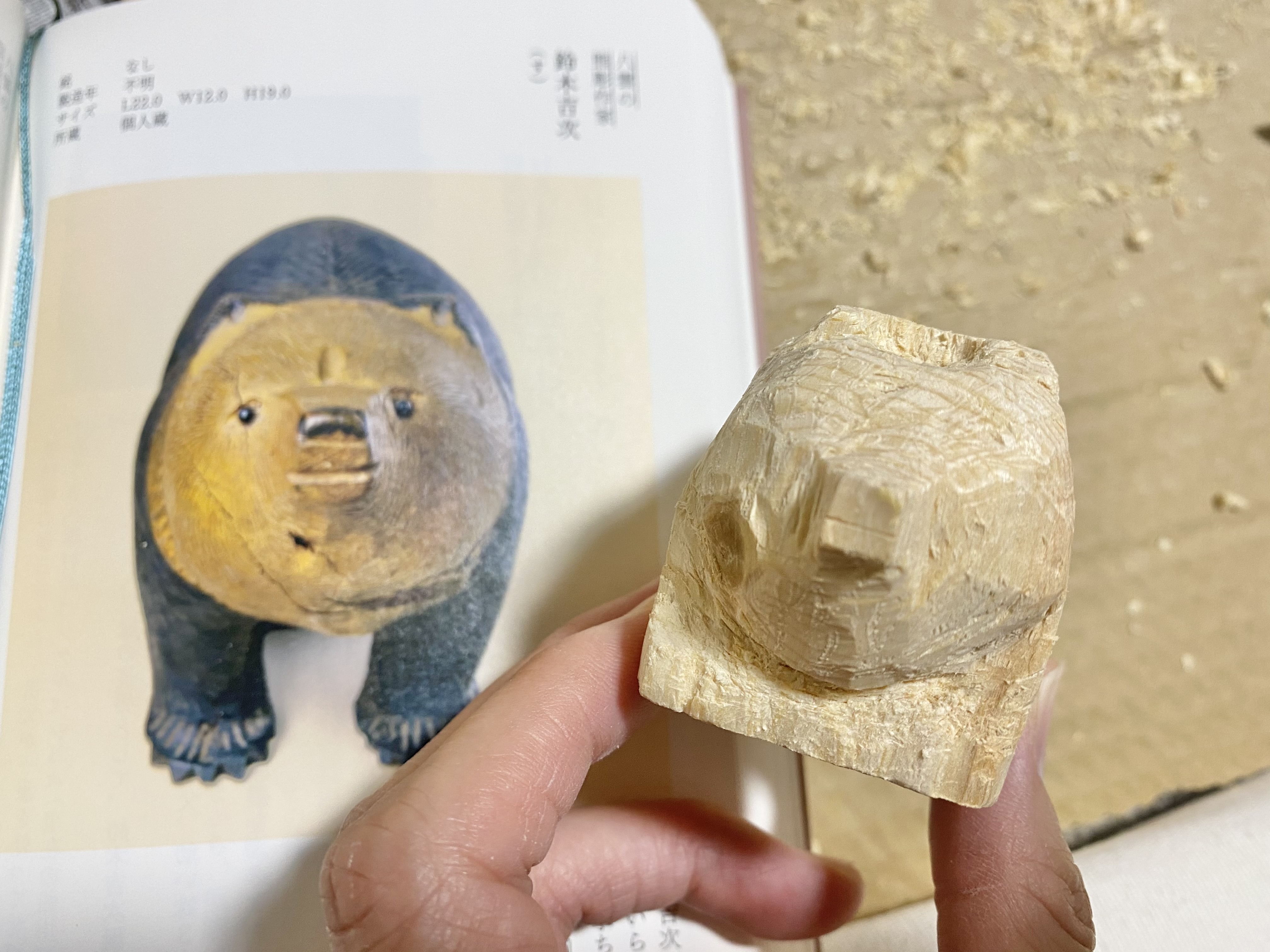 「爺ちゃん!熊彫ってよ!爺ちゃんならできる!」と声を掛けたのが始めたきっかけ。