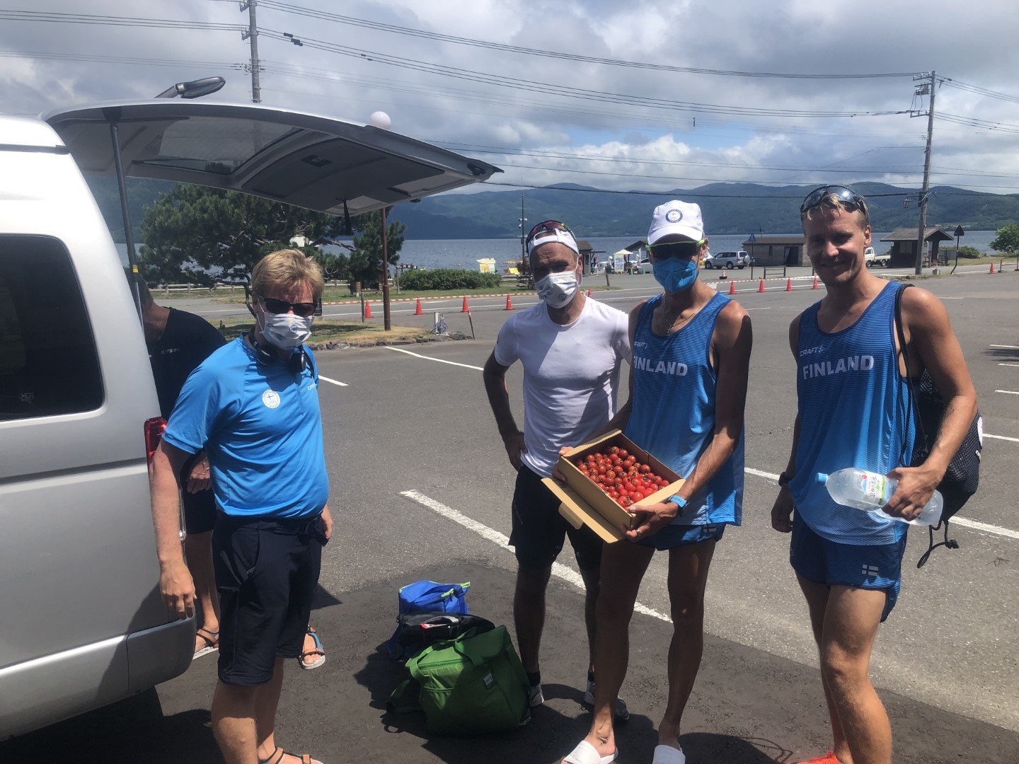 令和3年7月20日、壮瞥町地域交流センター山美湖駐車場で、田鍋町長、長内議長、応援隊員などが出席してフィンランドチームの歓迎式典を行いました。山美湖前で行われた歓迎セレモニーに選手達はとても感激していました。