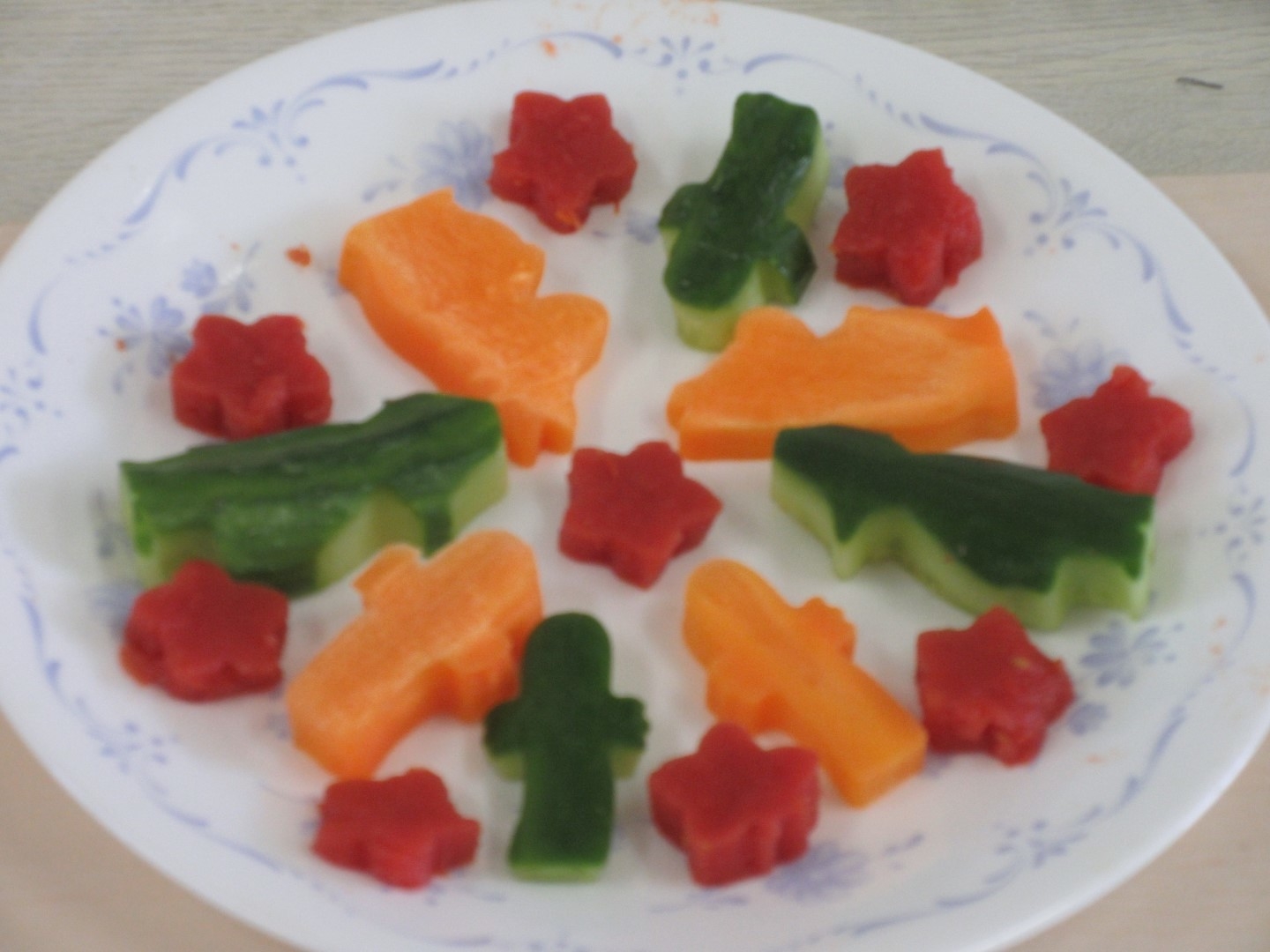デコレーションが上手な参加者の方がムーミン型やお花型に野菜を抜き取ってくれました。これで見た目も華やかですね。