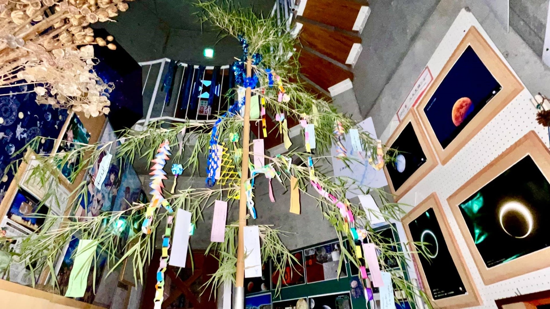 過去のブログでご紹介した応援プロジェクト(記事はこちら)で作成した千羽鶴はフィンランドへ送りますが、七夕メッセージは天文台(森と木の里センター)に、そしてヒンメリは地域交流センター山美湖の飾りになりました。