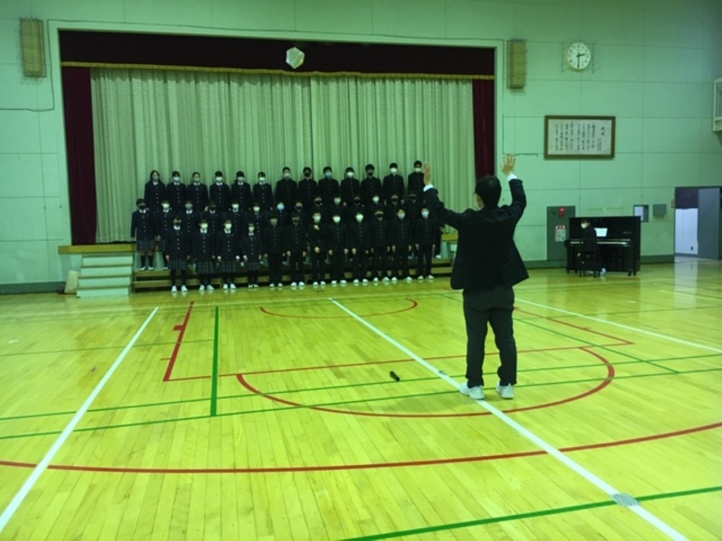 そして、壮瞥中学校にご協力をお願いし、私たちが学んだことを中学1年生および2年生にお伝えし、フィンランド国歌 「Mamme」の歌い方を伝えました。