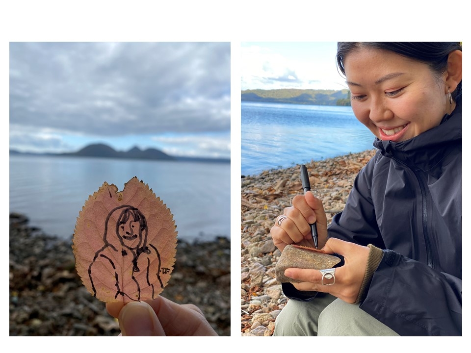 落ち葉に似顔絵を描いてもらいました。