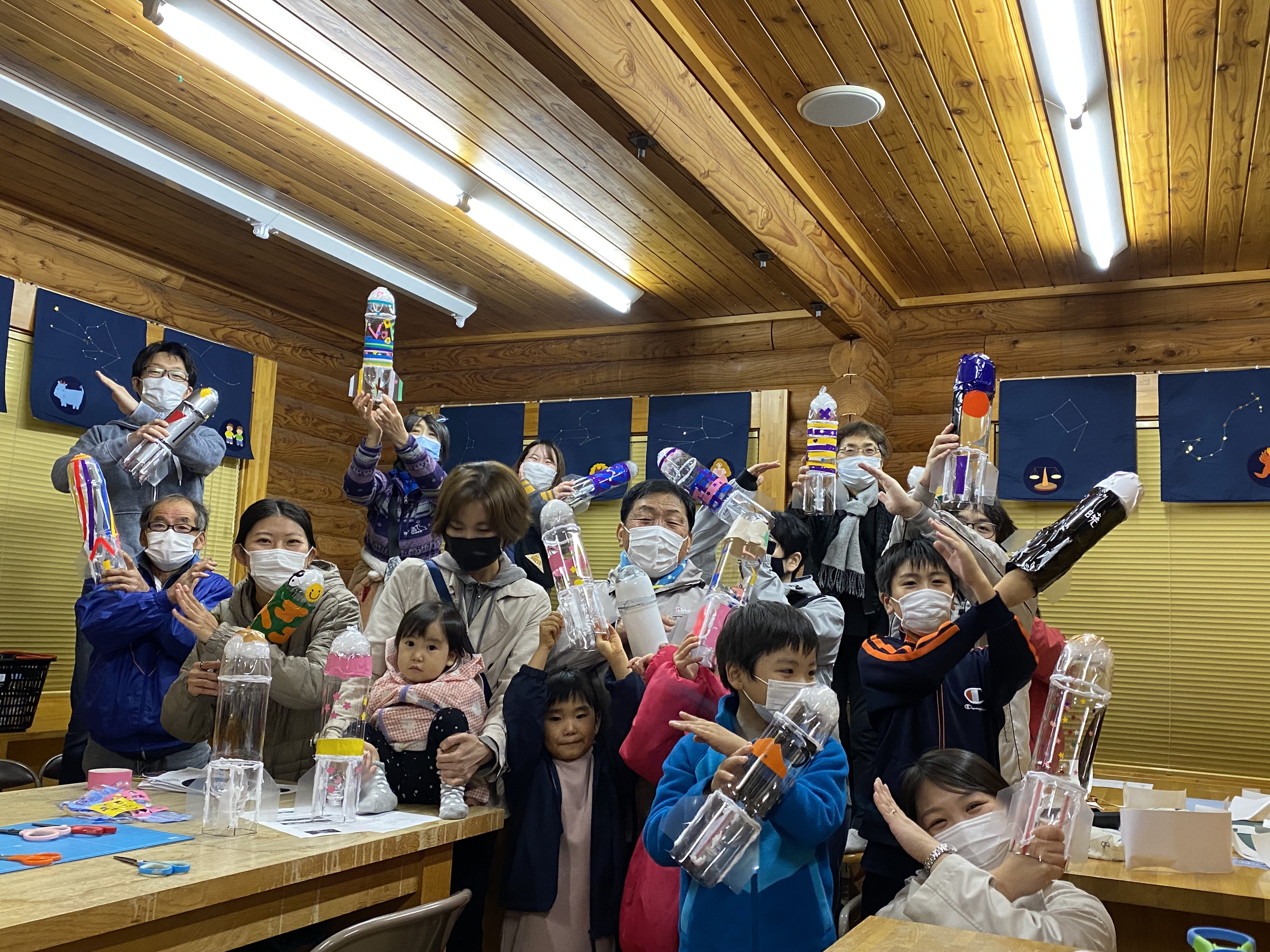 みなさんと一緒にペットボトルロケットを作成。