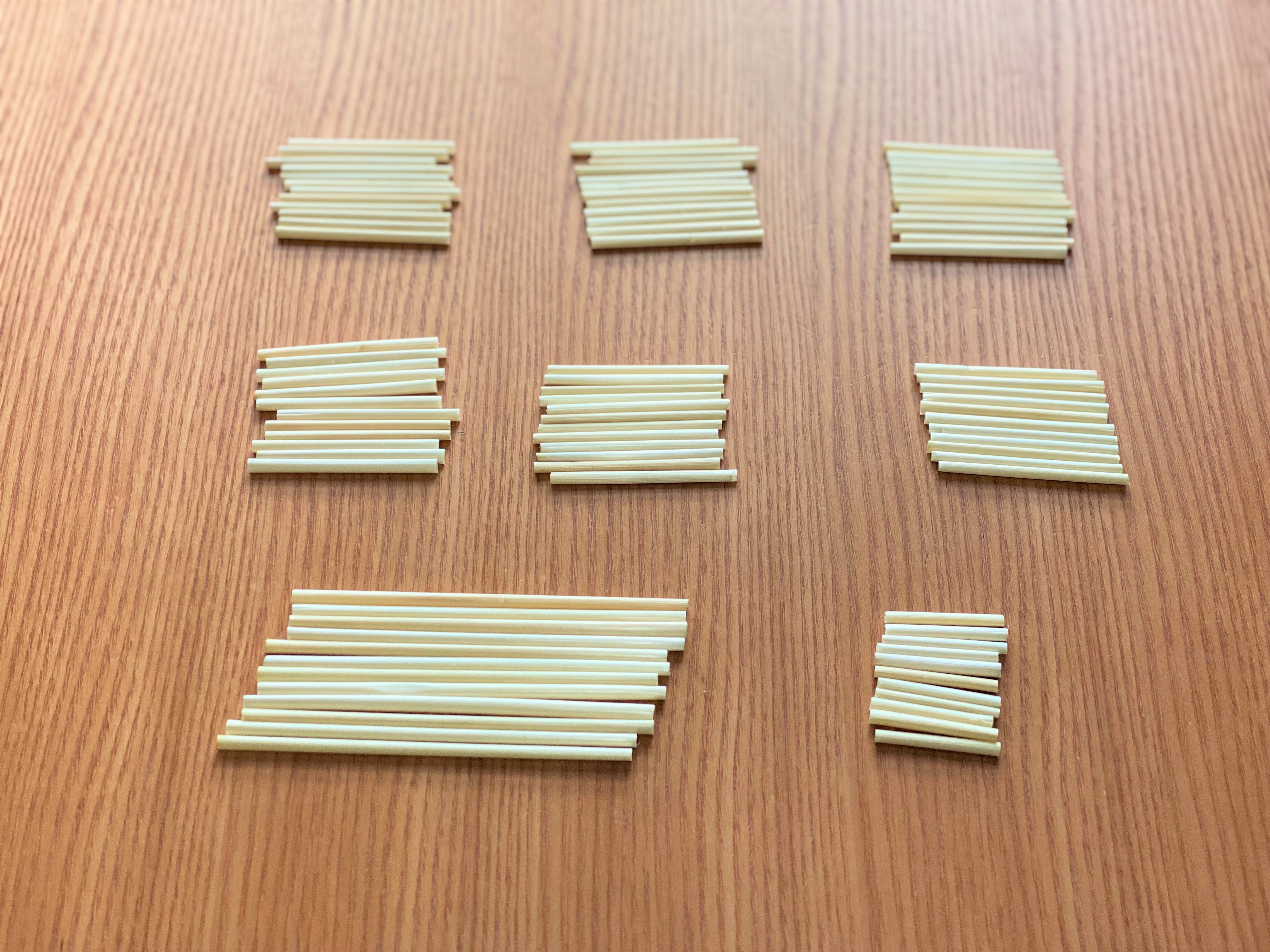 正八面体を作るには、同じサイズの麦わらが12本必要になります。