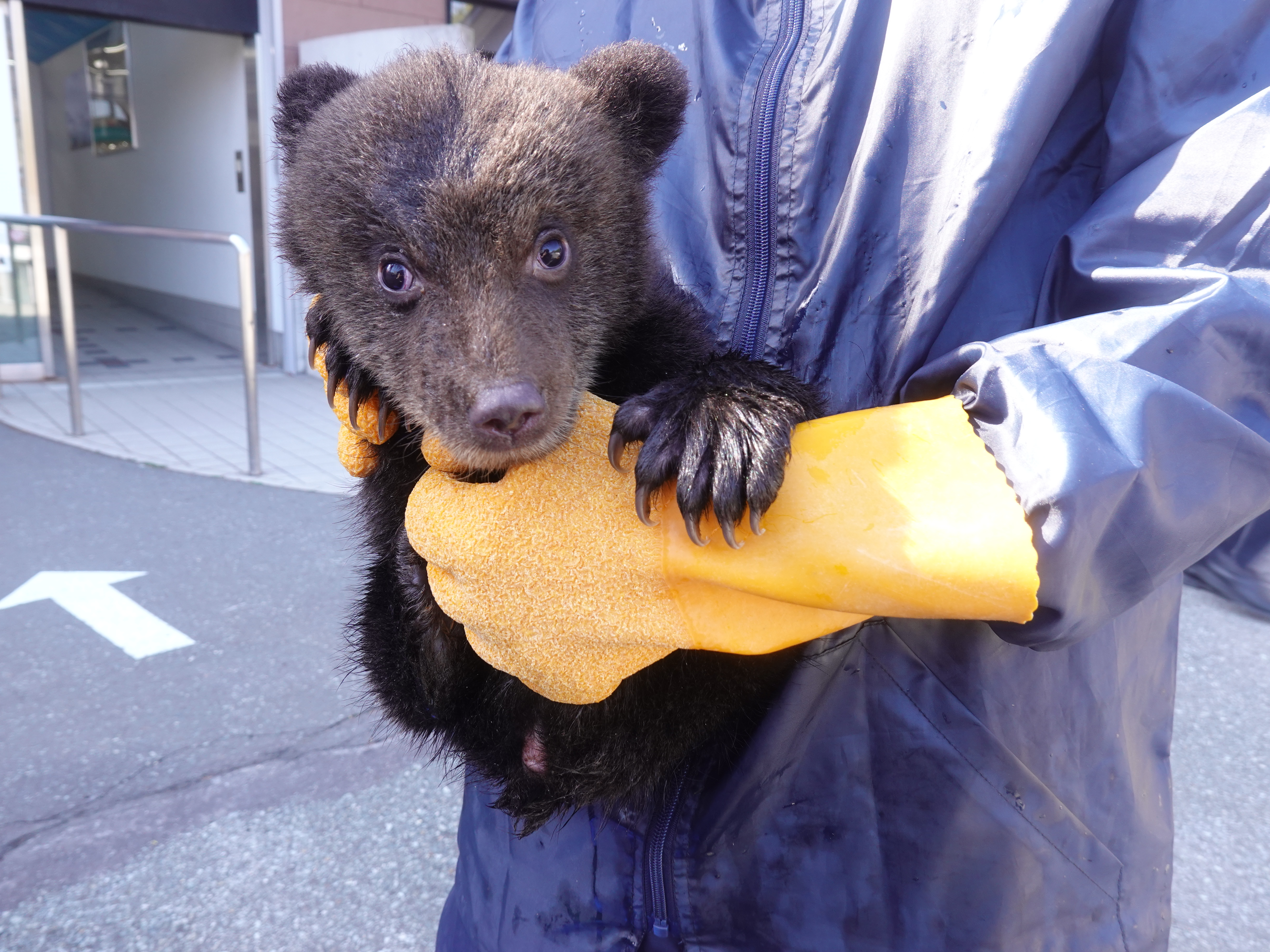 上記は母熊から離してすぐの子ぐまの写真。お母さんにくっついていたからでしょうか、おでこの辺りがくぼんで寝癖が出来ています笑。初対面からかわいい子ぐま。