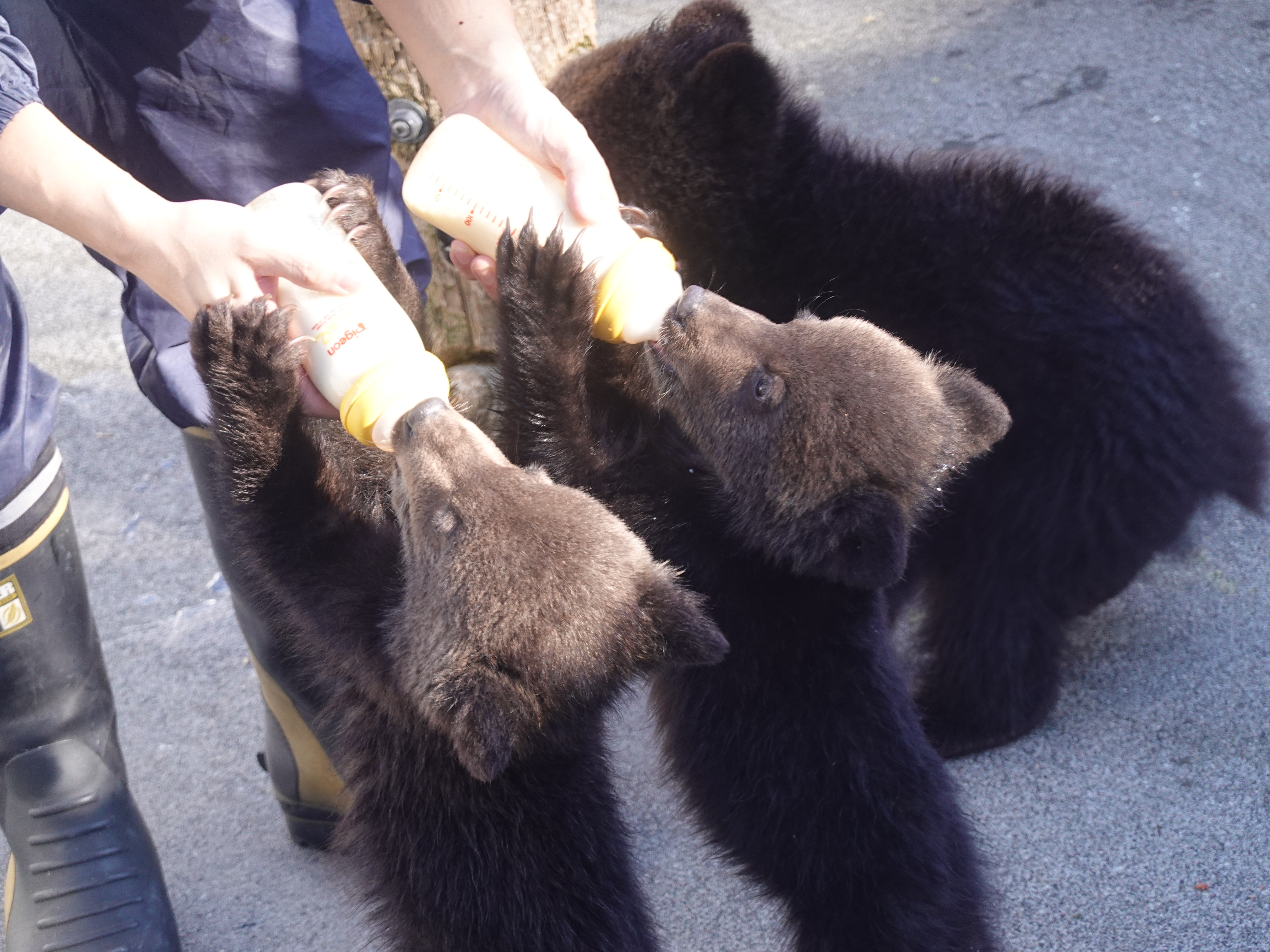 見ている分には良いのですが、やってみるとこれが非常に難しい!!手伝ってもらいながら、ミルクをあげるのですが、子ぐまはジタバタ、私はあたふたして...一緒にいた飼育員さんが一番大変だったと思います笑。