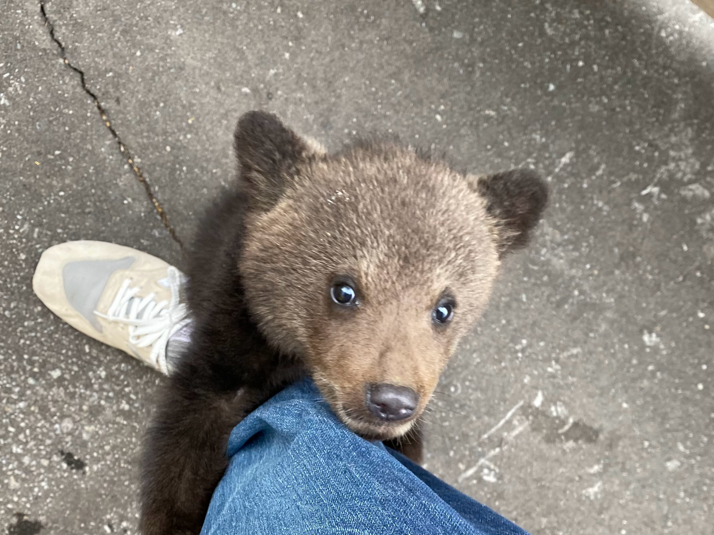 ミルクをあげた後に、子ぐま2頭が「遊んでくれ!」と言わんばかりに後をついてくるので、少し追いかけっこをしていました。「今がチャンス!」と思い、撮影しようとカメラを起動させるのに立ち止まると、1頭が足にしがみついて上目遣い。疲れが吹っ飛ぶレベルじゃなくて、もう死ぬかと思いました笑。