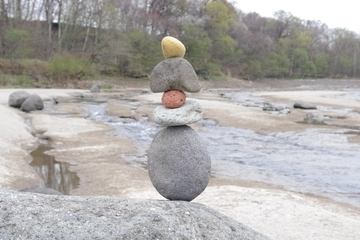 地面に転がっている大きな石を取り除き、先日設置した束石の形に合わせてシートをカットしていきます。