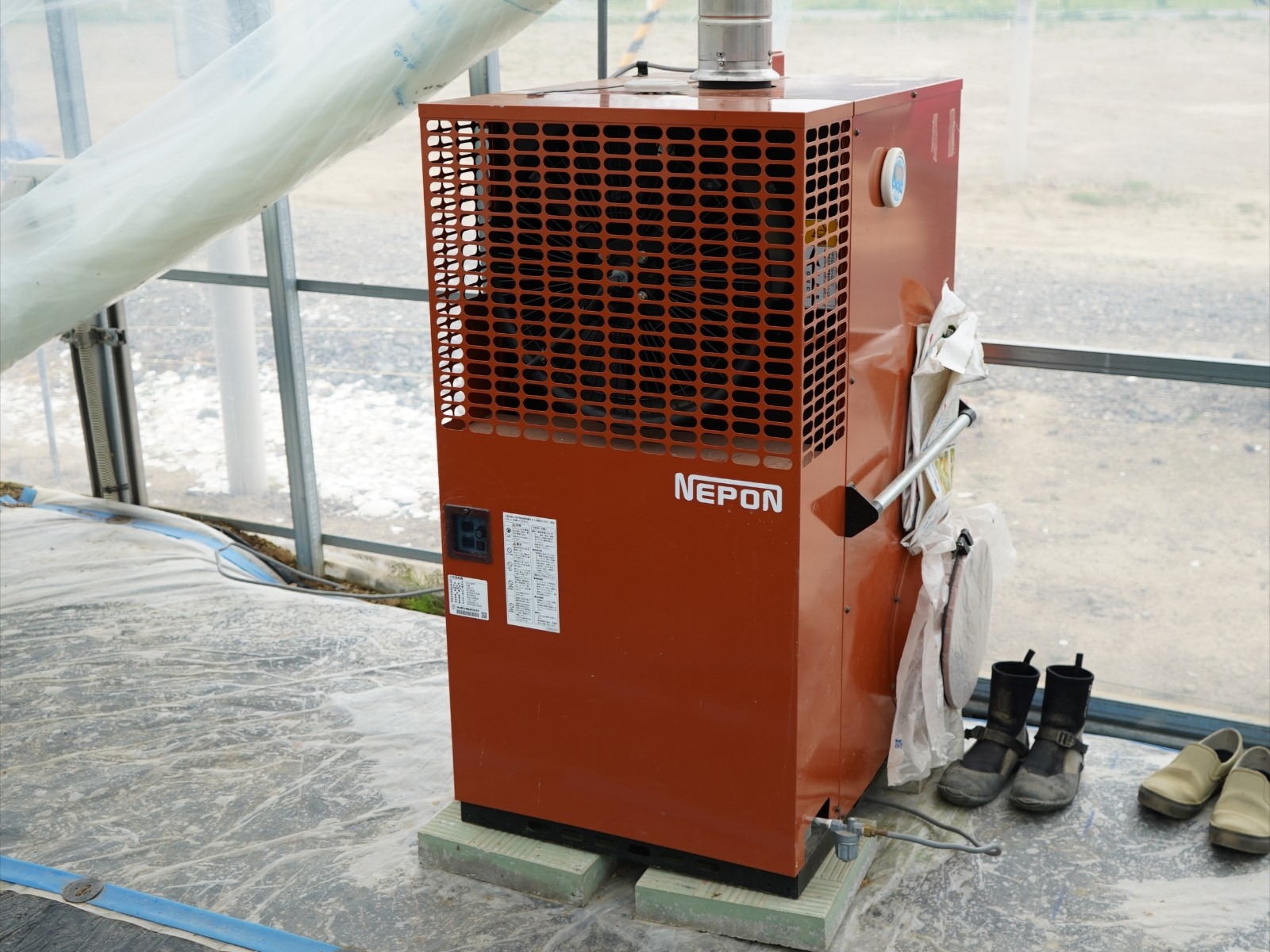 下の写真はビニールハウス内を温めてくれる暖房です。
