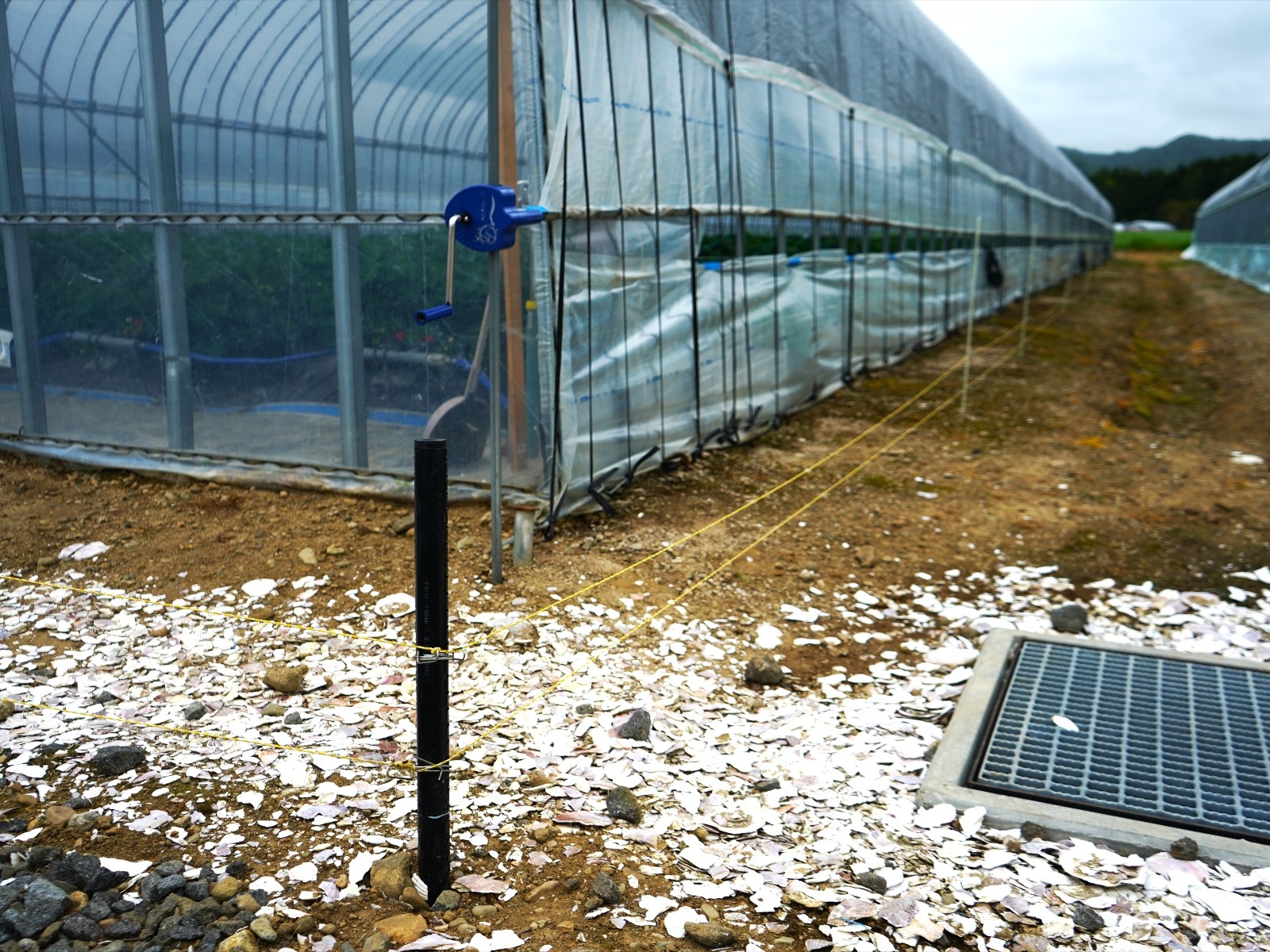 ハウスの外には電気柵が