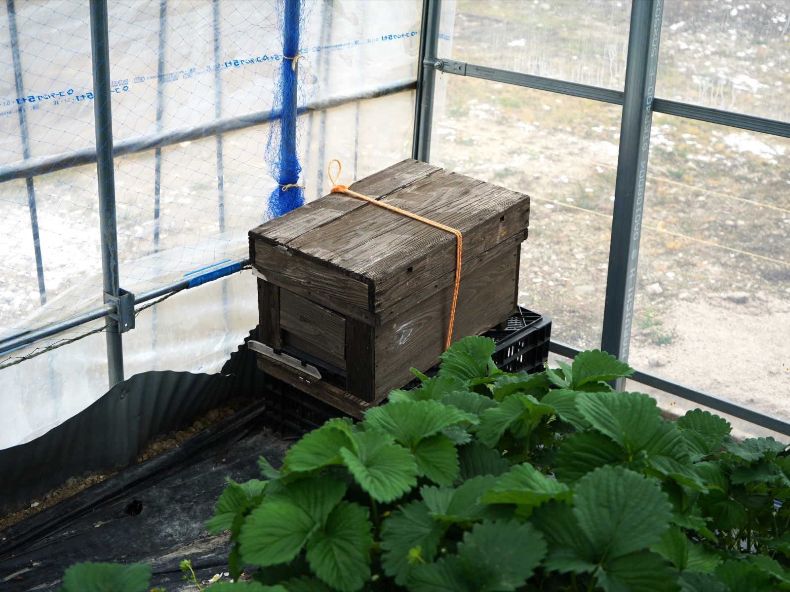 ハウス内に置かれた木の箱
