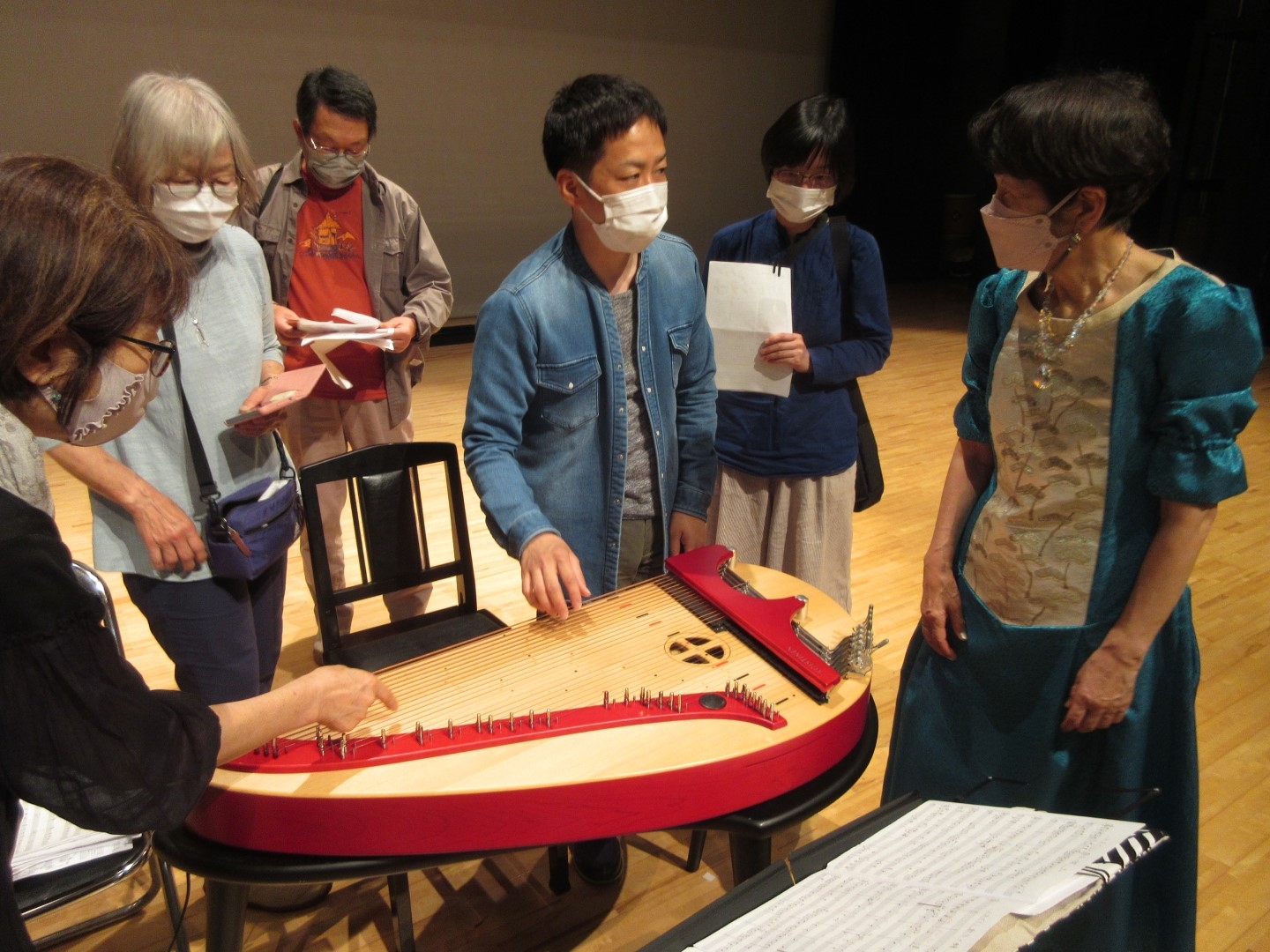 佐藤美津子先生のご厚意で、コンサートの後、カンテレを触らせてもらいました。実際に間近でカンテレを見て、弦を触らせてもらい、みなさん貴重な体験ができたと思います。