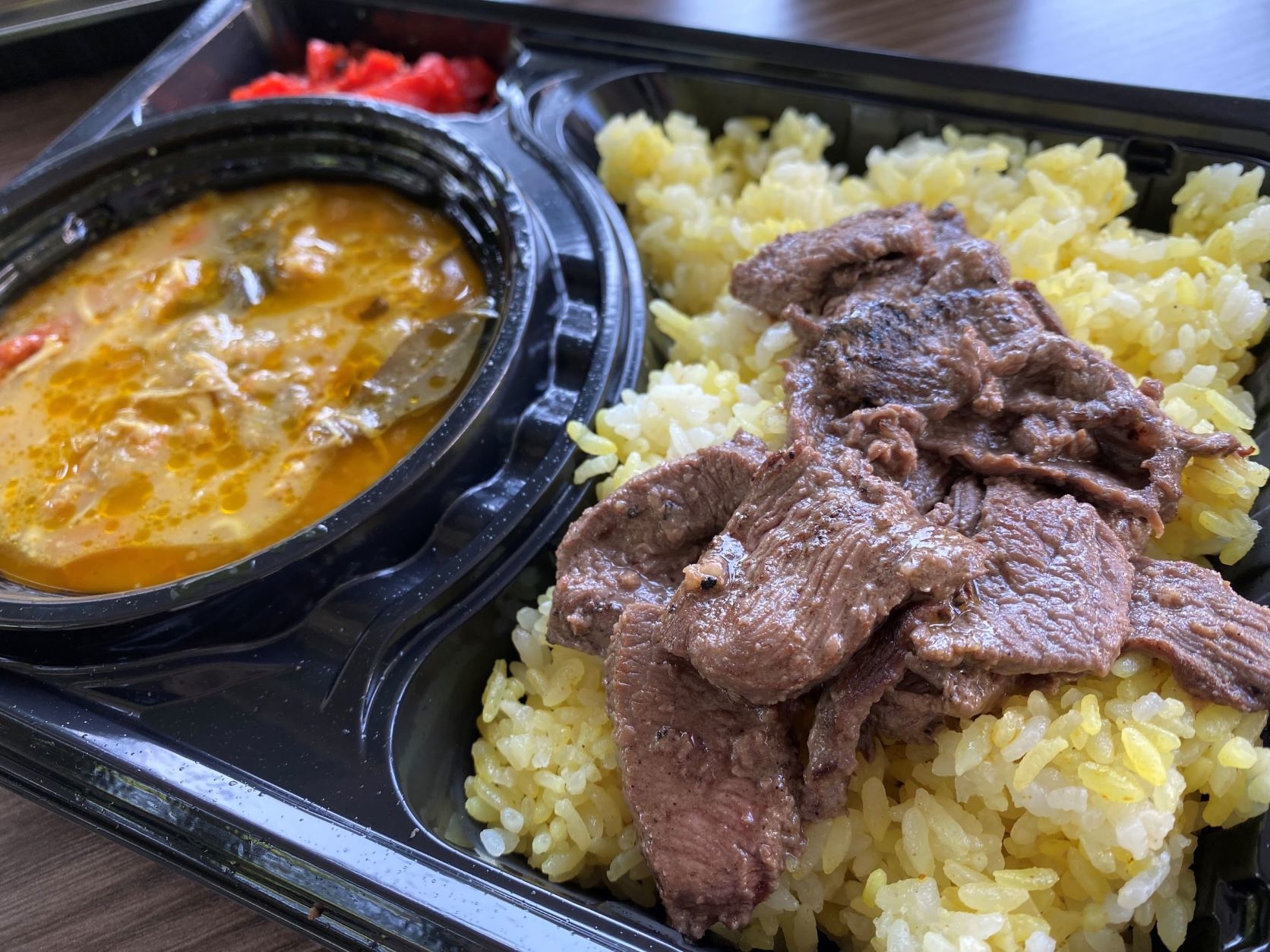 この日のランチは伊達市大滝区から出店した「シカトモ」のカレー。実は鹿肉をそんなに好きではないのですが、なぜだか「シカトモ」だと食べてしまう。本当に美味しい!なのでいつも鹿肉鉄板焼きをトッピングしちゃいます。