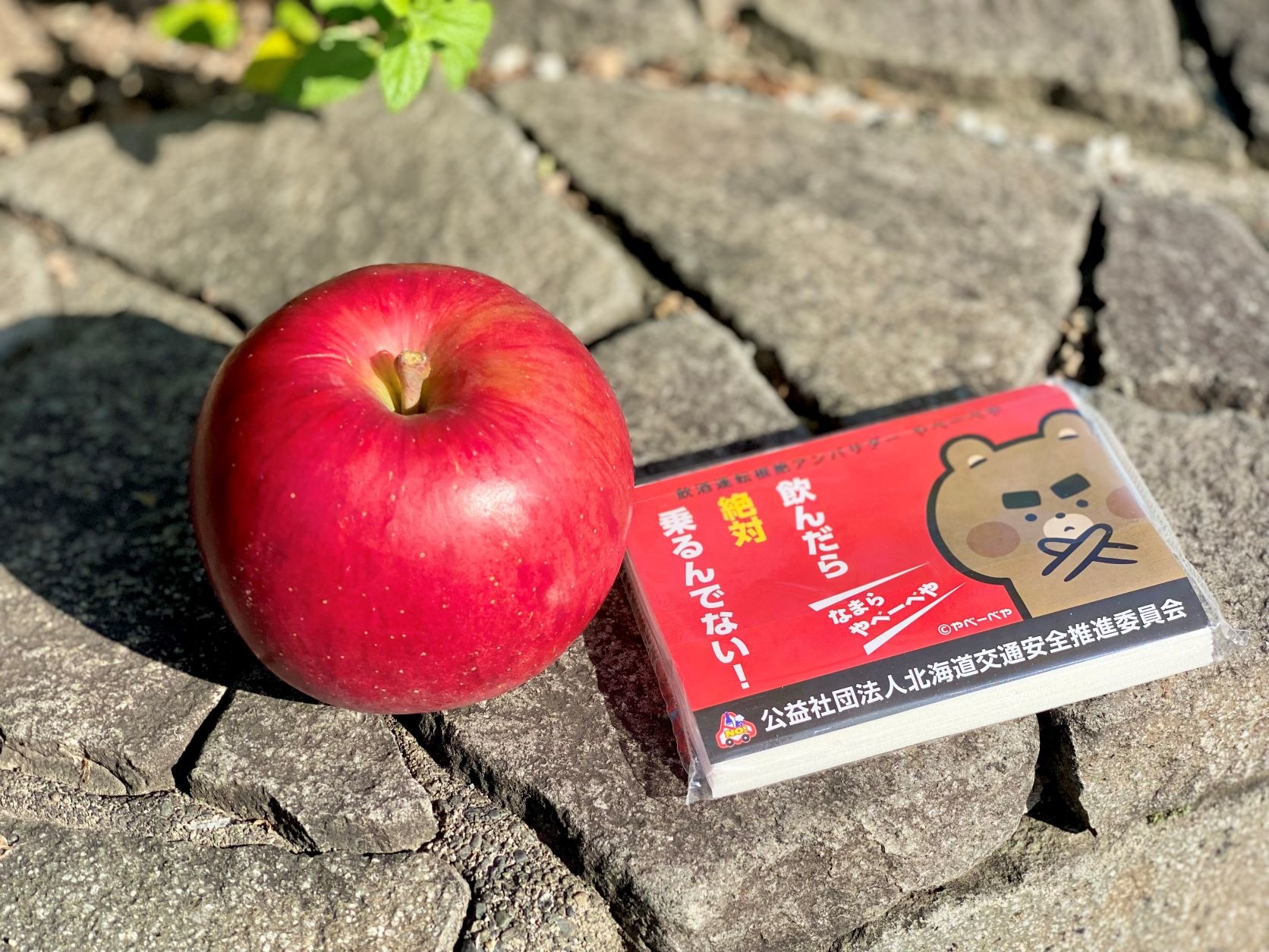 信号待ちのドライバーに壮瞥産りんごなどを配布。交通安全を呼びかけました。