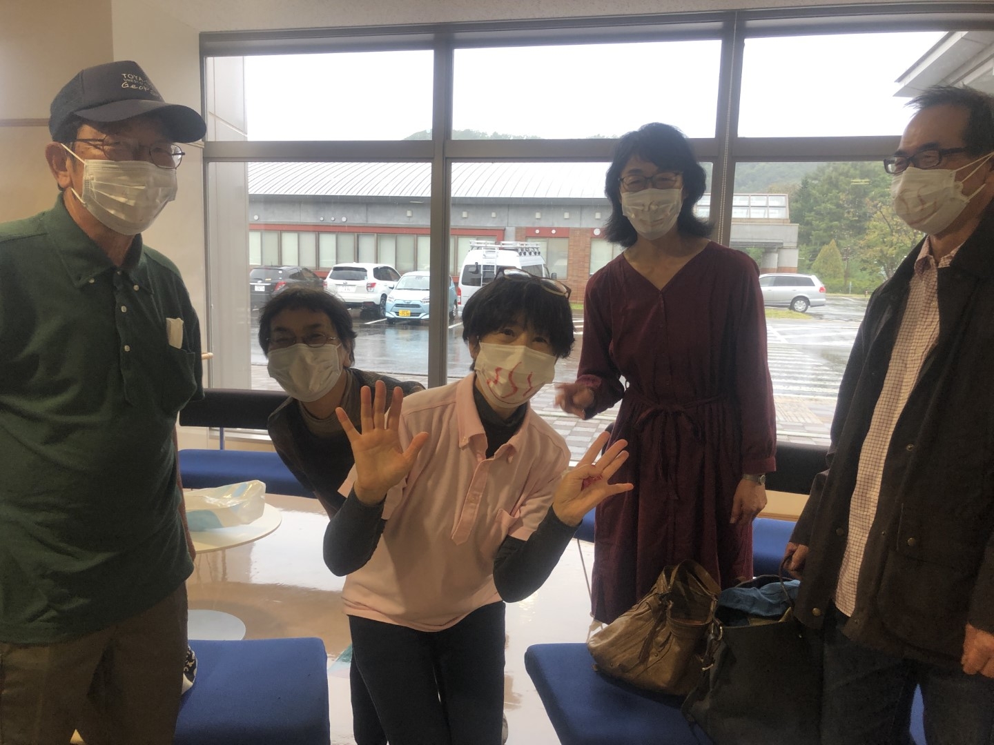 温泉クラブの皆さんはマスクに温泉マークを書いてやる気満々でした!