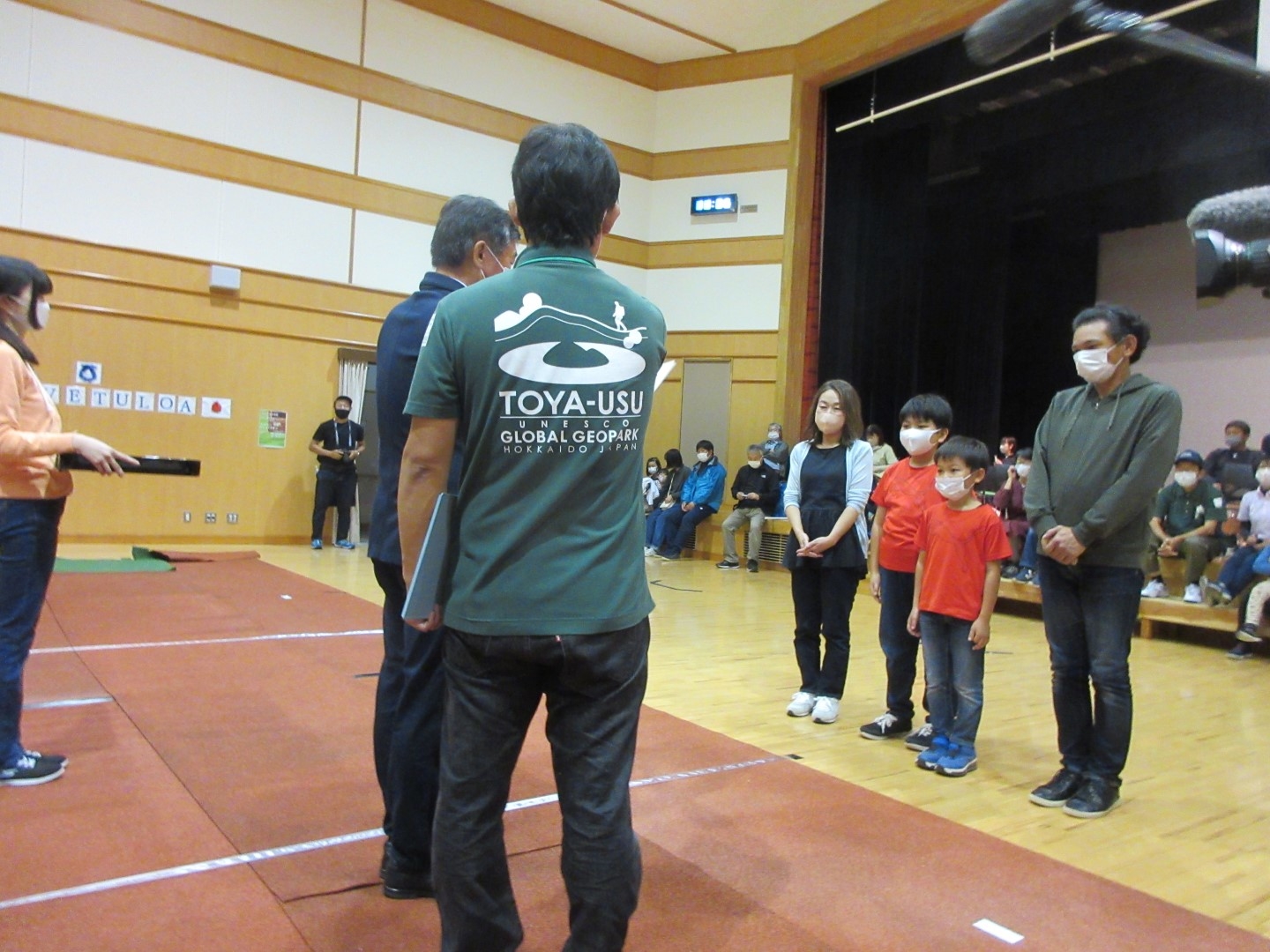 壮瞥高校グラウンドで実施予定でしたが、残念ながら雨天予報だったため、場所を壮瞥町地域交流センター山美湖 多目的ホールに移して人工芝などを使って、5つのコートを準備しました。