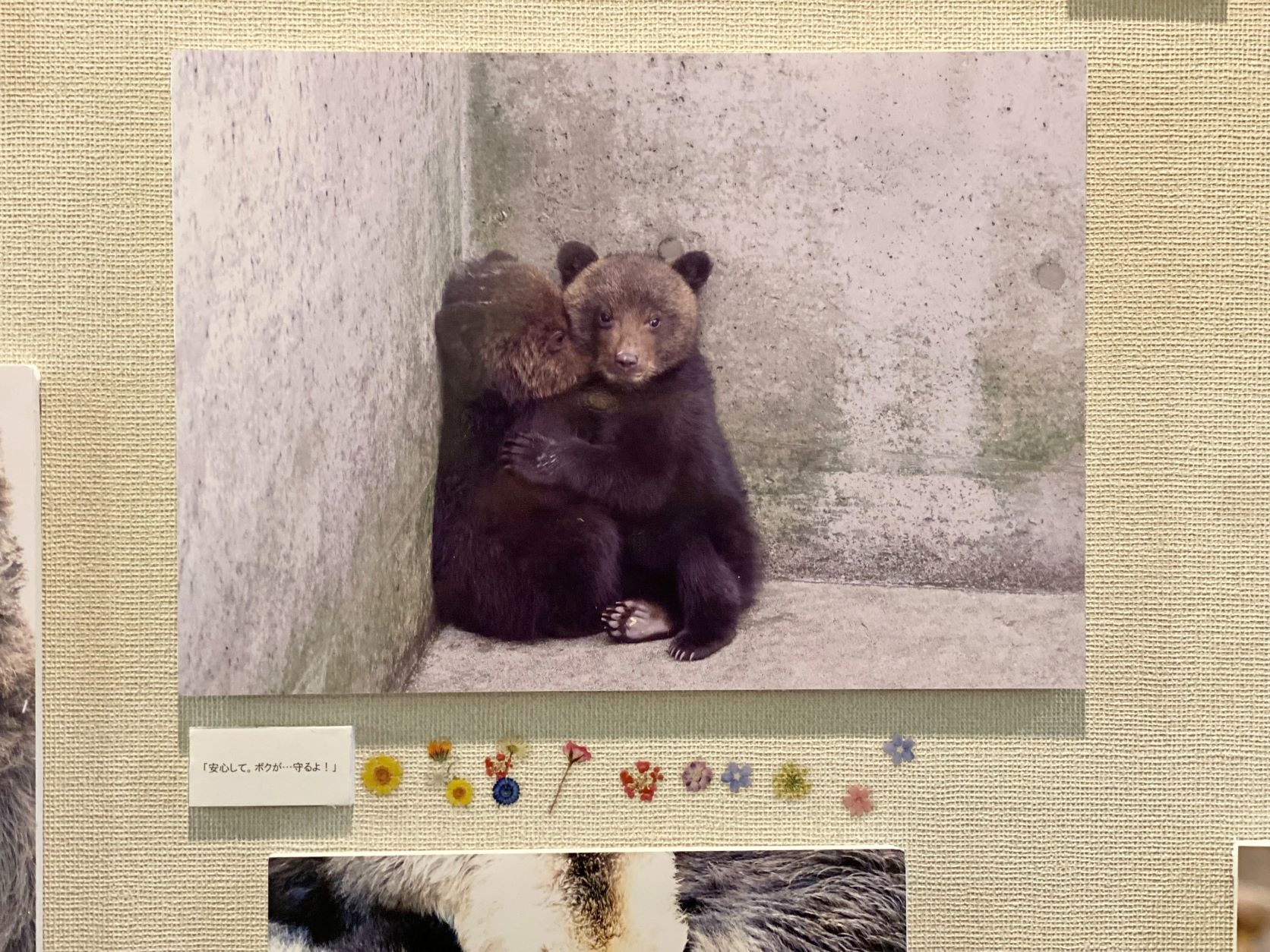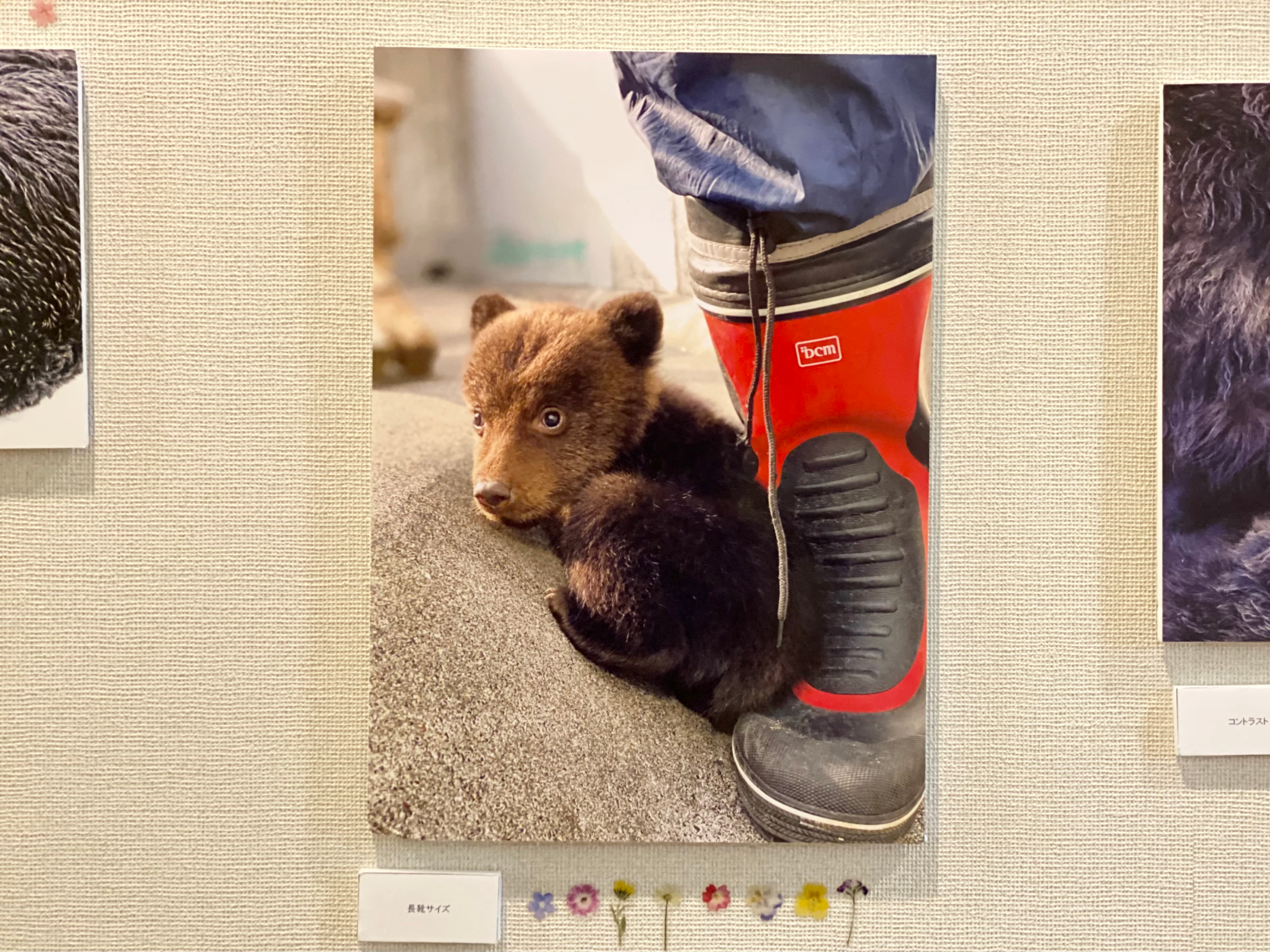 人気第2位は長靴と並び、子ぐまの実際の大きさ・小ささが伝わりやすい1枚が選ばれました。見ながら「こんなに小さいんだね~」とつぶやく方が多くいらっしゃいました。おでこに寝ぐせがついているのもかわいいポイントです。