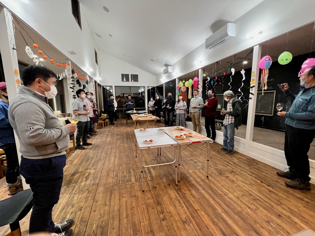 丹波ワイン様が壮瞥町のぶどうを使って醸造している「Sopet Blanc 2021」や「STキャンベル 2021」を味わいながら、圃場責任者の末田さんの話を伺ったり、地域おこし協力隊の杉山さんが腕を振るったお料理を食べたり盛り上がりを見せました。