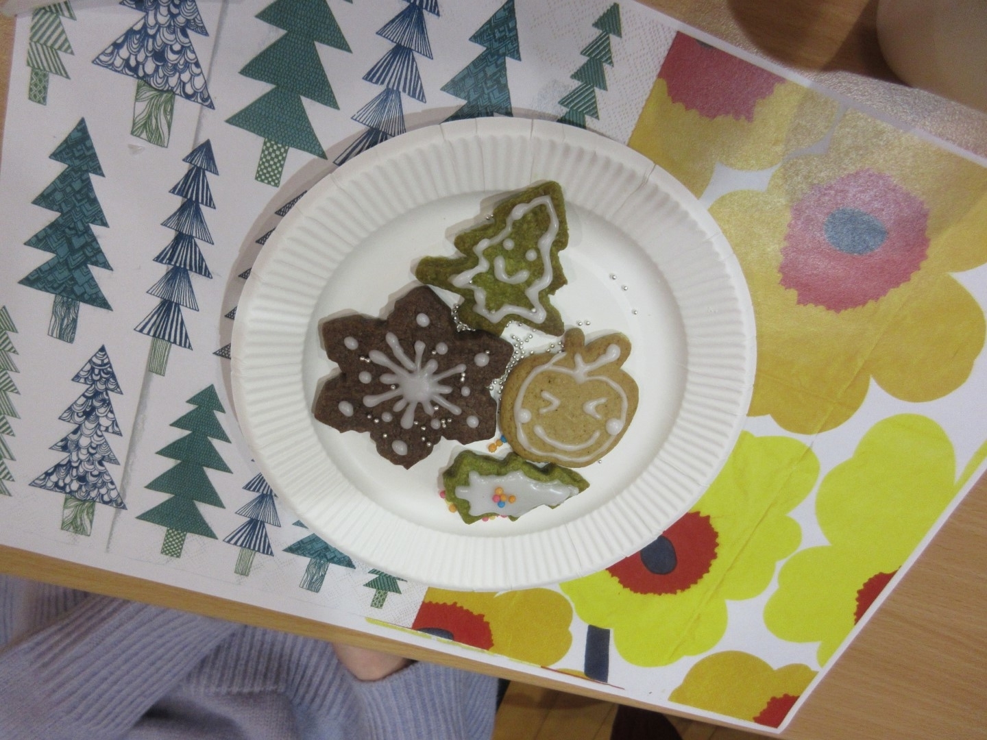 フィンランドではジンジャーブレットクッキーが主流ですが、手作り無添加のアイシングを用意したので、アイシングが目立ちやすいチョコクッキーと抹茶クッキーも用意しました。![]()
