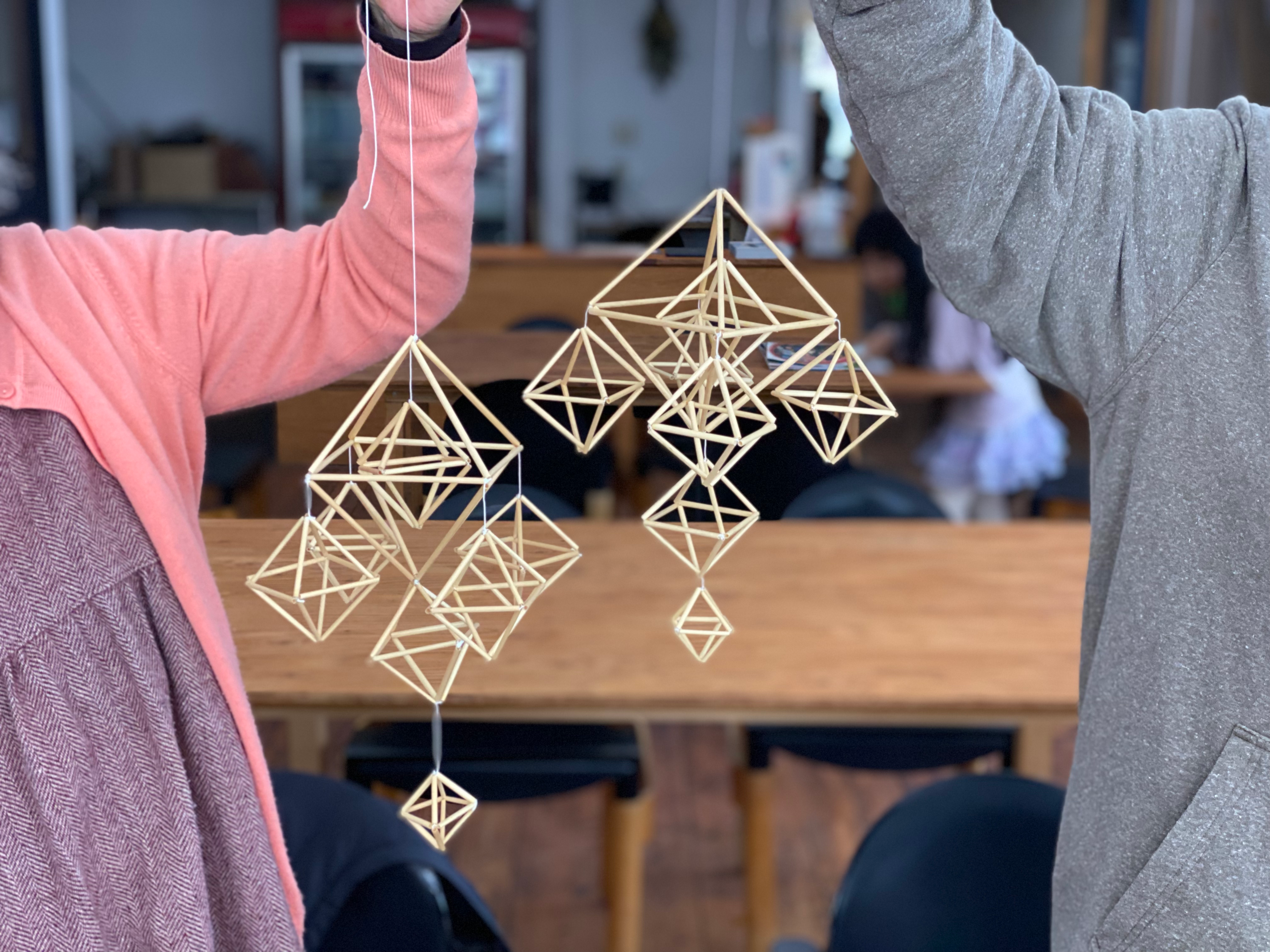 今回提案した2種類のヒンメリはどちらも基本の正八角形を組み合わせてできる形。