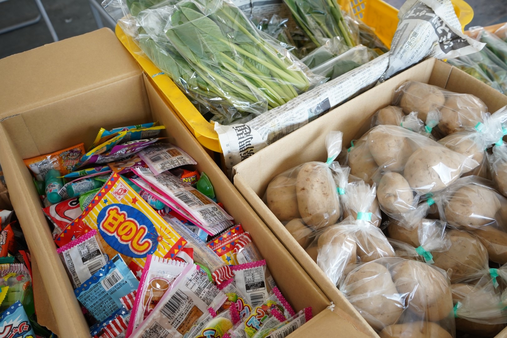 リフトからほうれん草やじゃがいもも降ってきて、子どもも大人も大喜びでした。