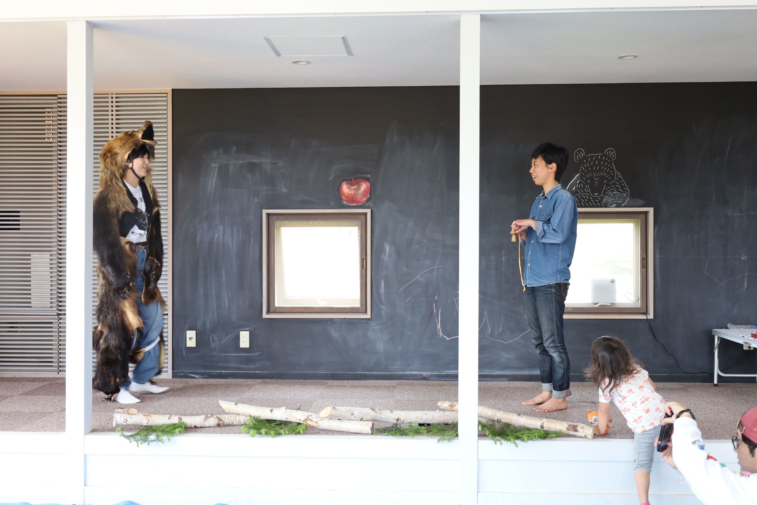 最後は私がヒグマ役になり、参加者を巻き込んで笑「ヒグマが棲む森を歩く」ロールプレイングをしました。