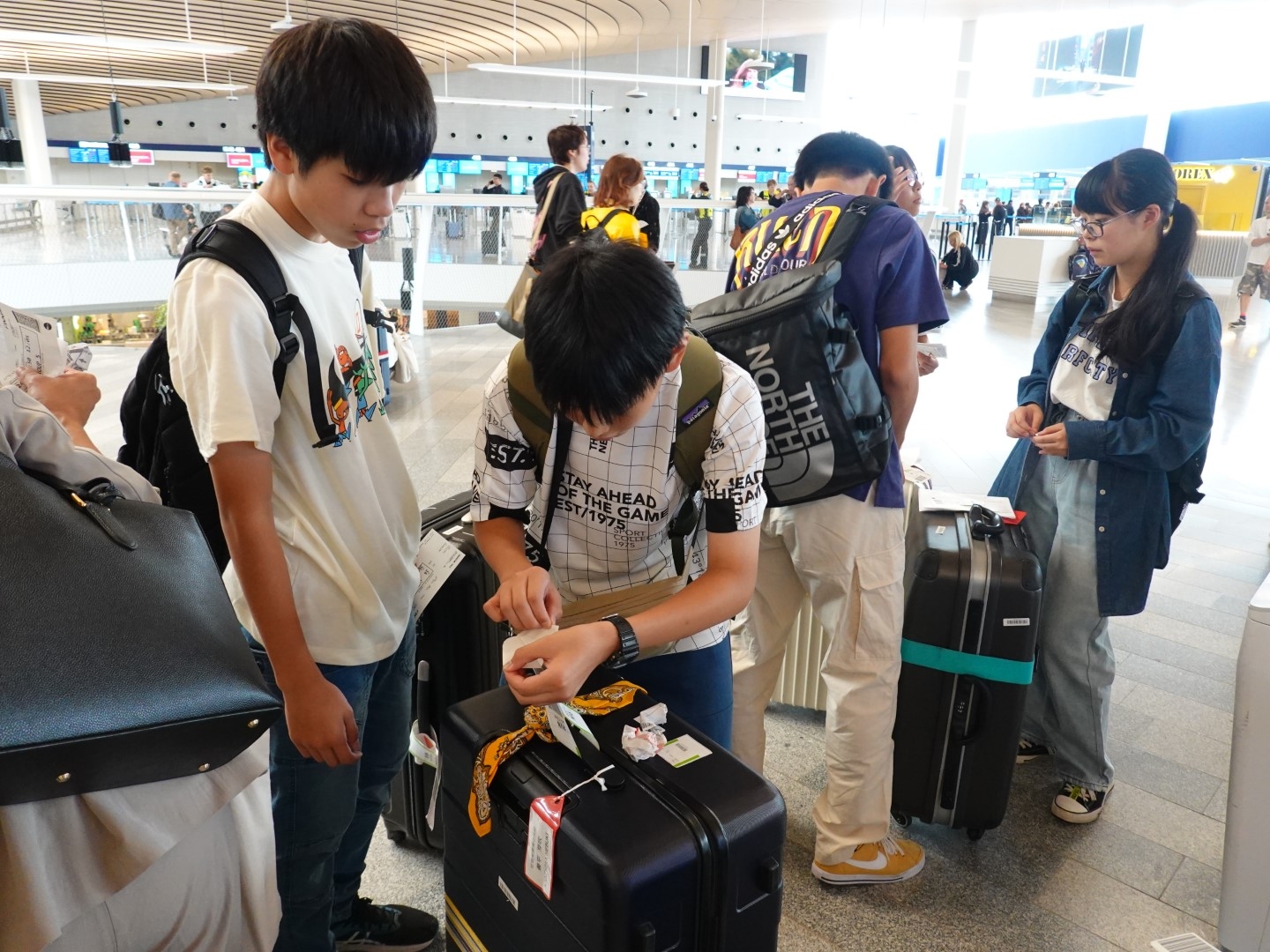 飛行機への搭乗時間は12時間以上の長時間にわたりましたが、みんな機内食や映画やゲームを楽しんでいたようです。