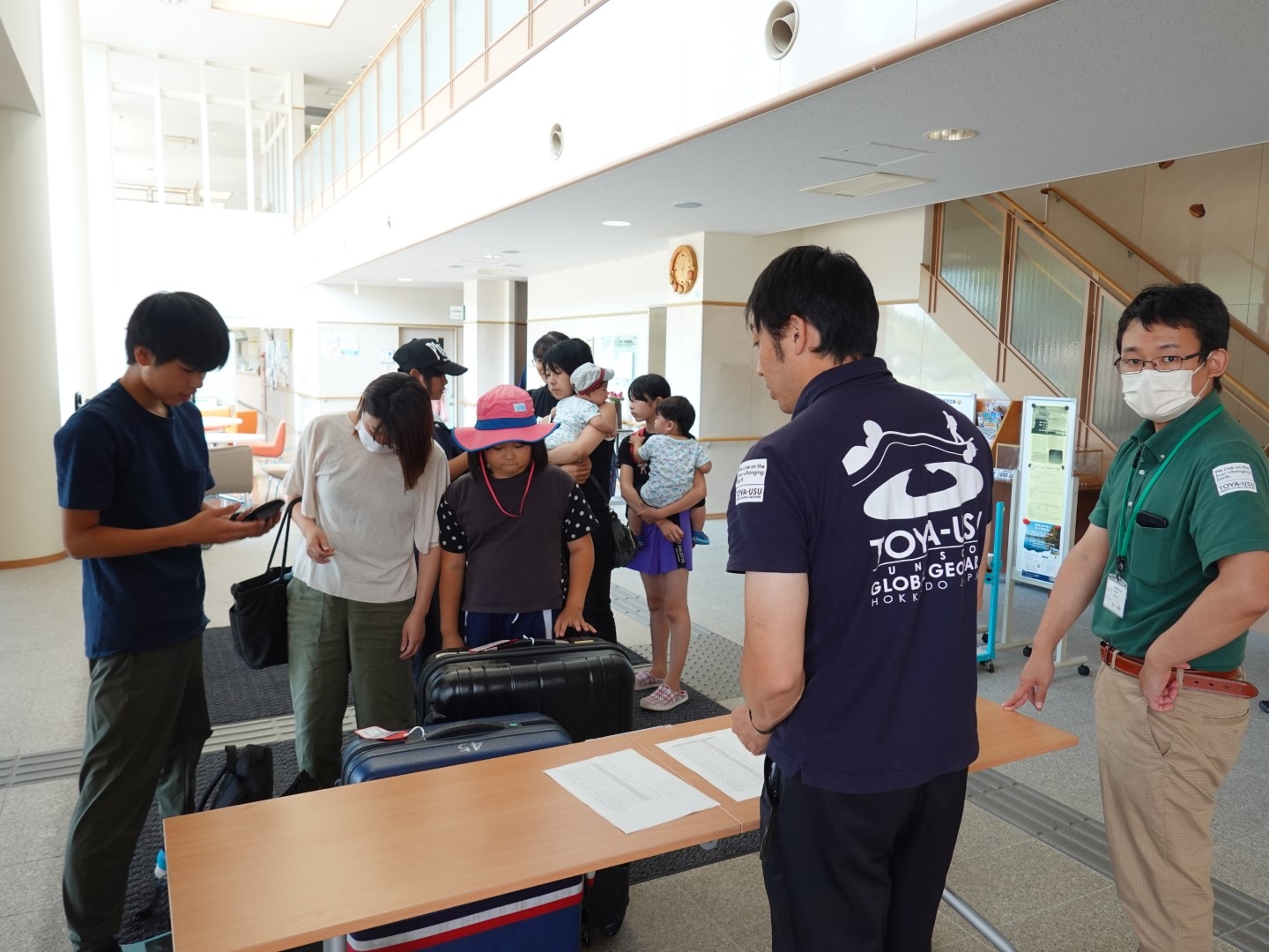 生徒のみなさんは保護者の方と一緒に壮瞥町地域交流センター山美湖へ到着しました。緊張している人も晴れやかな顔の人も・・・スタッフと一緒に荷物の最終チェックを行い、出発式を実施しました。![]()