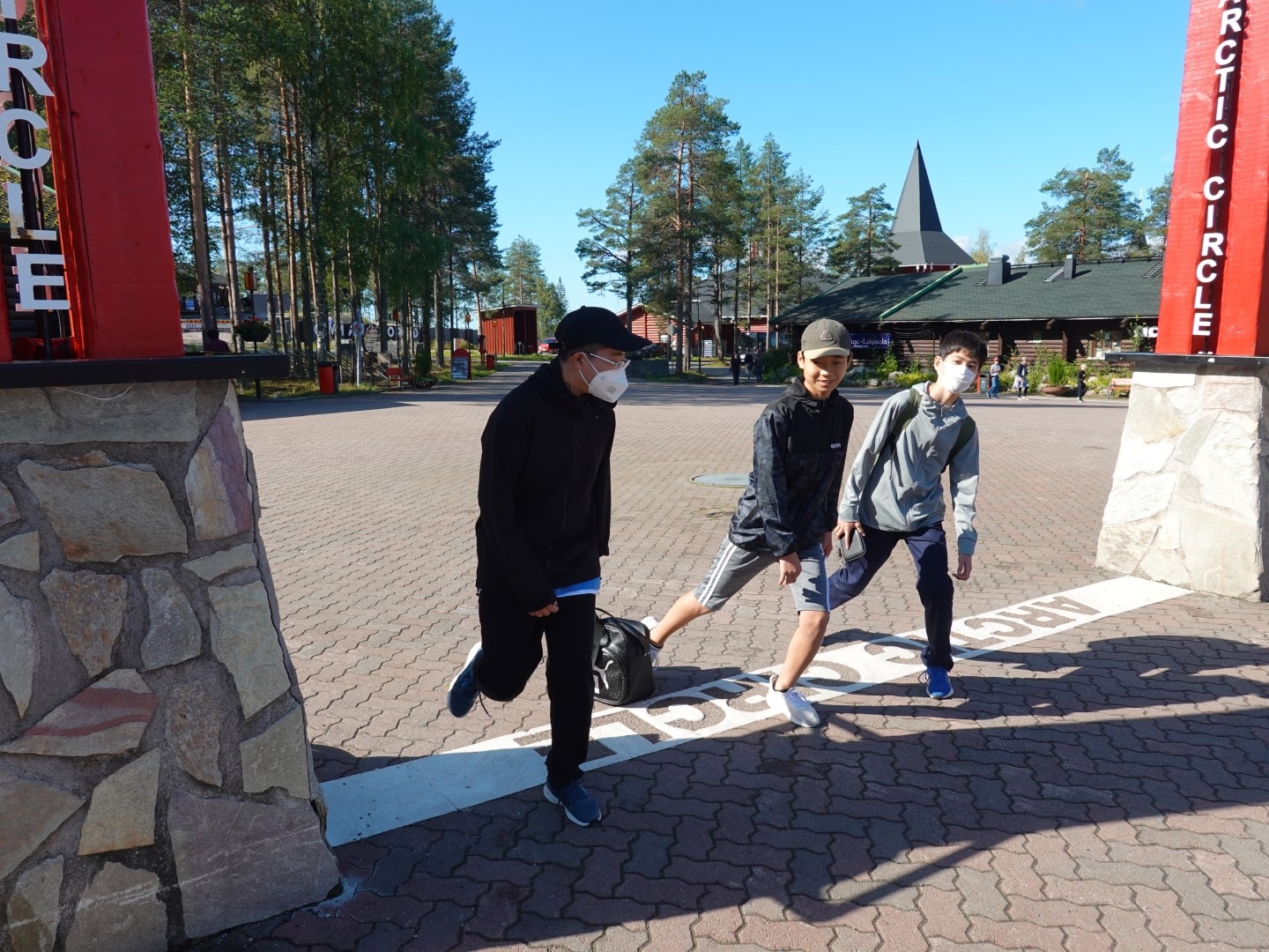 サンタクロース村には北極圏の入口、北極線があります。北極線を越えると・・・何か感じたのかな?