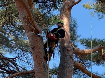高所での枝の剪定作業